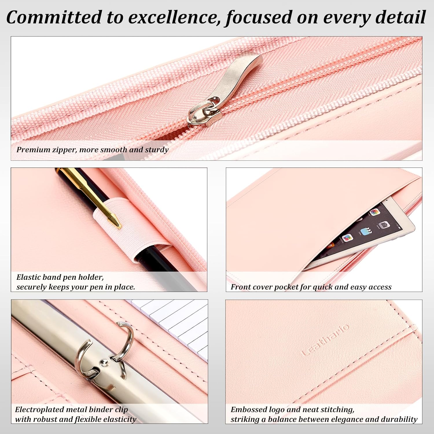 Leathario Portfolio Binder, Includes 10 Sheet Protectors and 3 Notepads, 3-Ring Folder Organizer, A4 Padfolio with Zipper, Vegan Leather Tablet Sleeve, Business Office Conference Clipboards