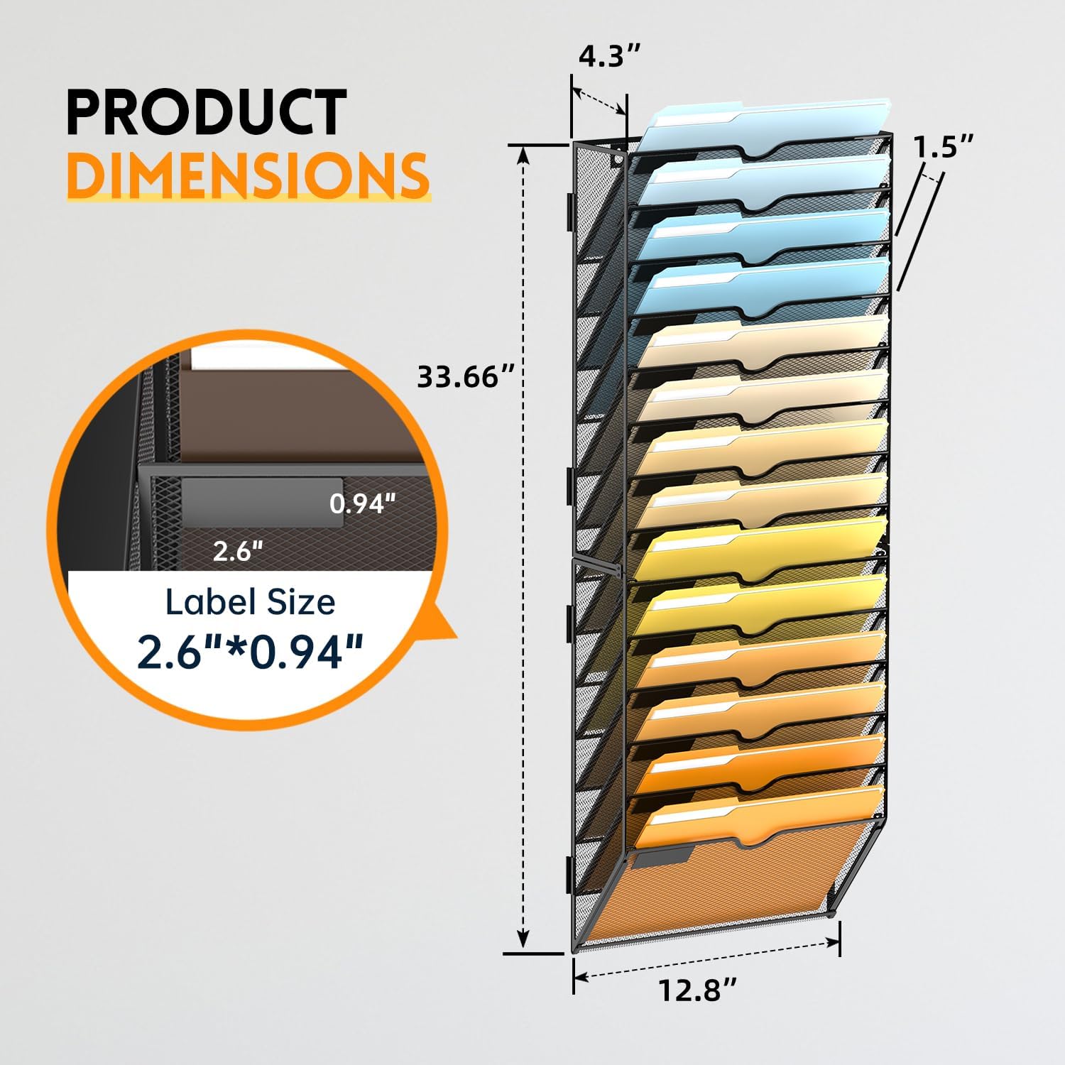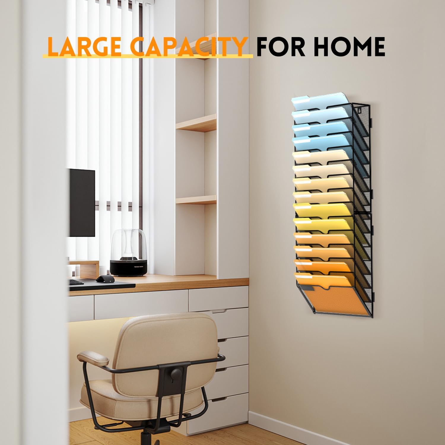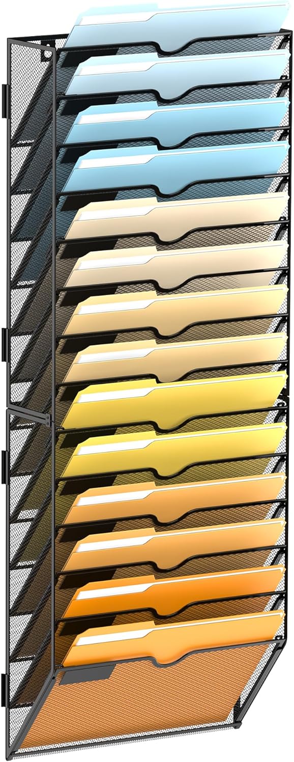 SUPEASY 14-Tier Wall File Organizer Mesh Office Mail Holder, Hanging Wall Organizer Magazine Rack for Office Black