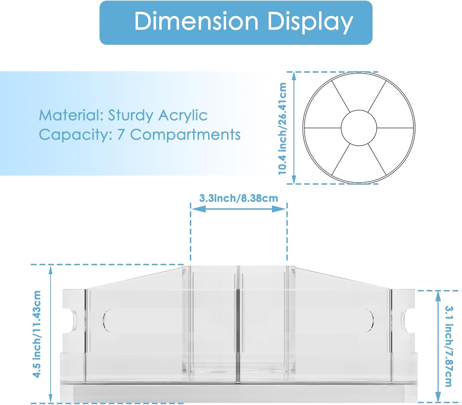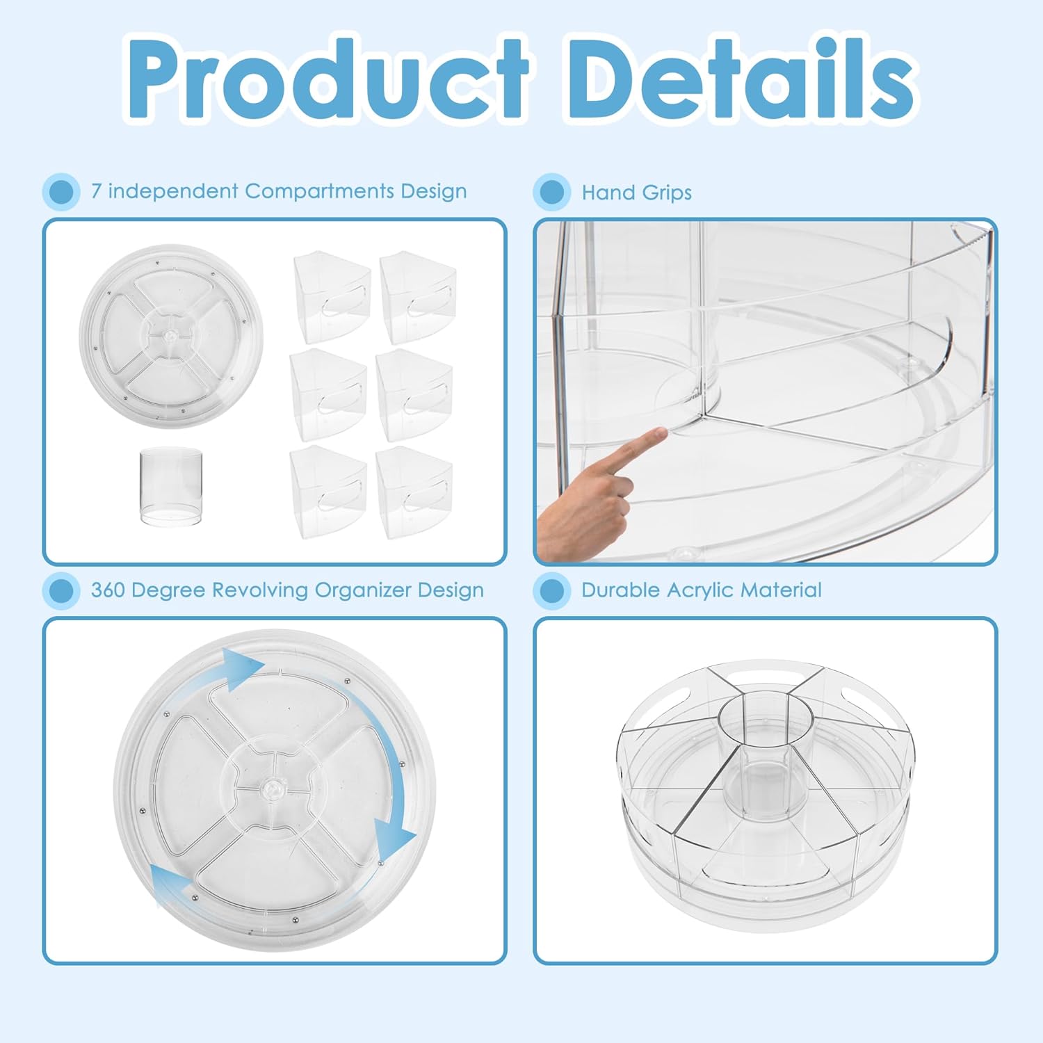 Pen Organizer for Desk - Acrylic Pen Holder with Hand Grips, 360° Extra Large Rotating Desk Organizer with 7 Removable Compartments for Office, Home, and Makeup Storage, Marker Organizer