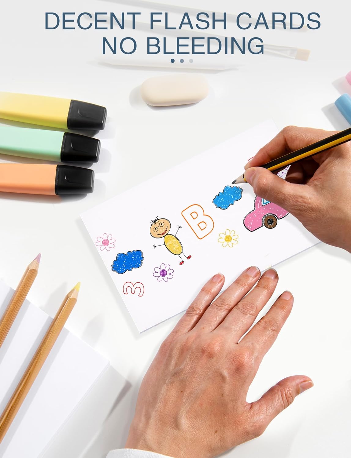 - 【HEAVYWEIGHT NOTECARDS 】-- Our 4x6 blank cards unlined are crafted with premium heavy-weight 160 GSM card stock, making them durable and suitable for multi-purpose, They work perfectly with a variety of writing instruments such as pencils, fountain pens, ballpoint pens, water-based pens, and markers, and no bleeding to the next cards at all. Great product for keeping your life on track.