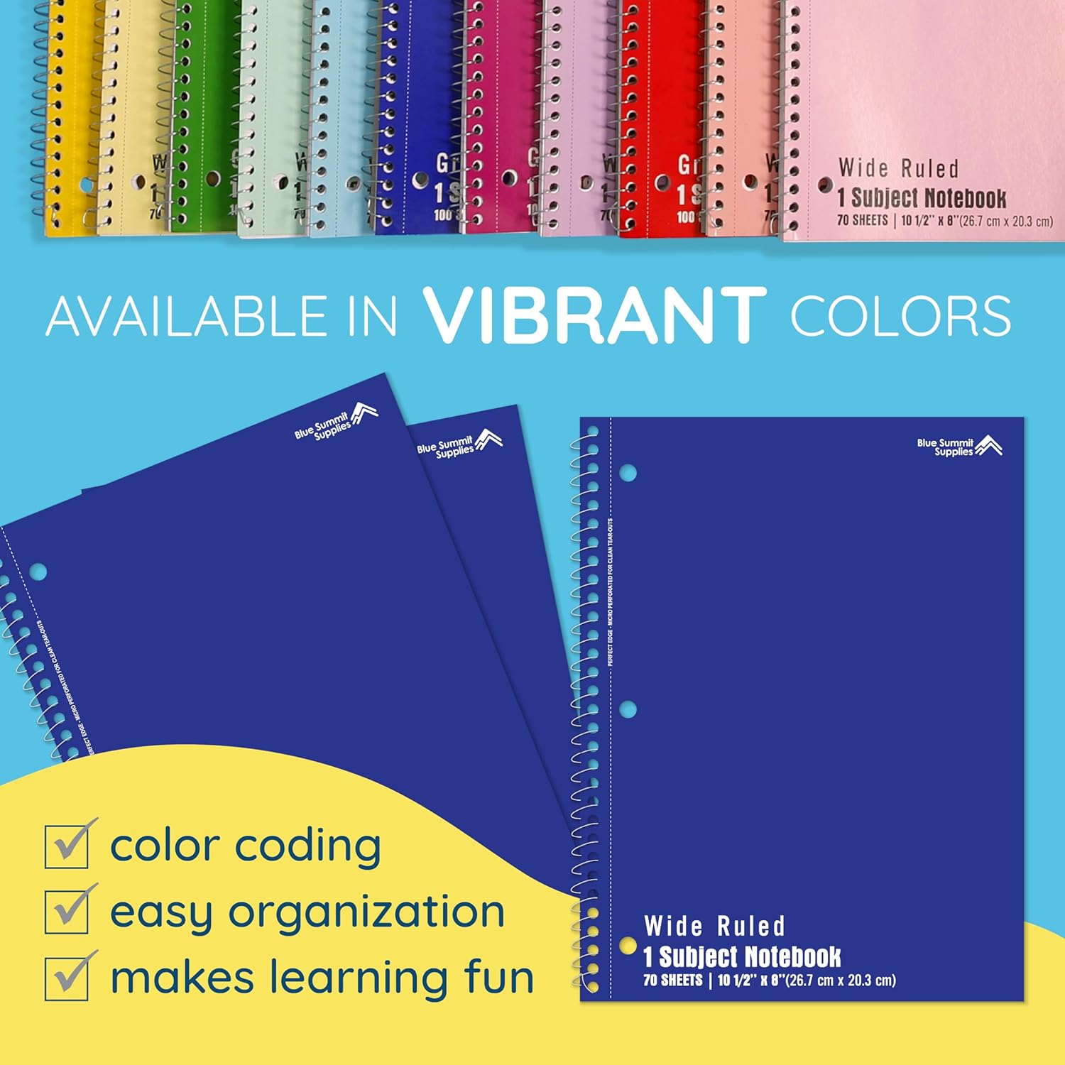 - Stay Organized by Color โ With solid blue covers, these spiral notebooks wide ruled are ideal for sorting subjects, tasks, or studentsโgreat for school notebooks or work.