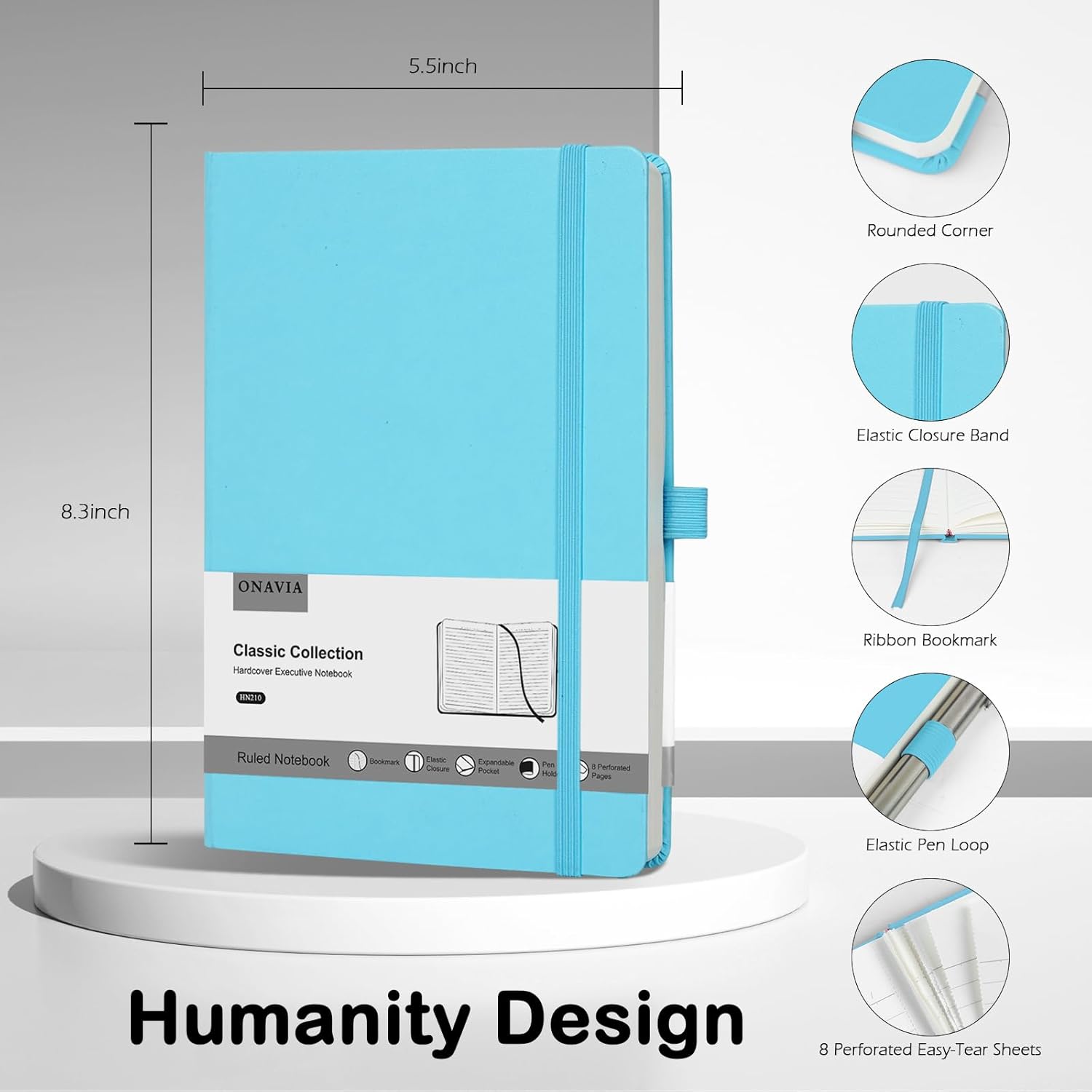 - 【Hardcover Notebook Journal】ONAVIA 5.5×8.3 inches standard lines notebook features a sturdy and durable hardcover, 80sheets, 160 pages, perfect as gift