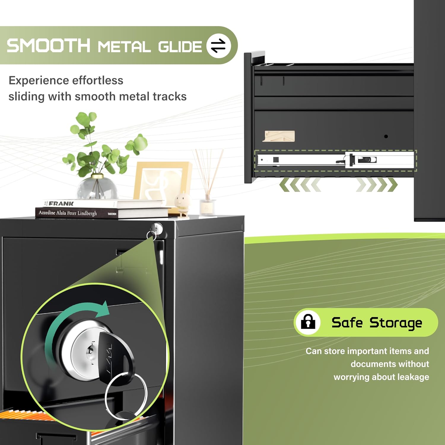 - ăHigh securityăTwo-drawer file cabinet with Lock is equipped with a built-in interlocking system to ensure drawer security. One locks with two keys ensures that your files are safe and easy to manage. The cabinet with drawers can be locked into two drawers at the same time with a lock, which is smooth and easy to operate.