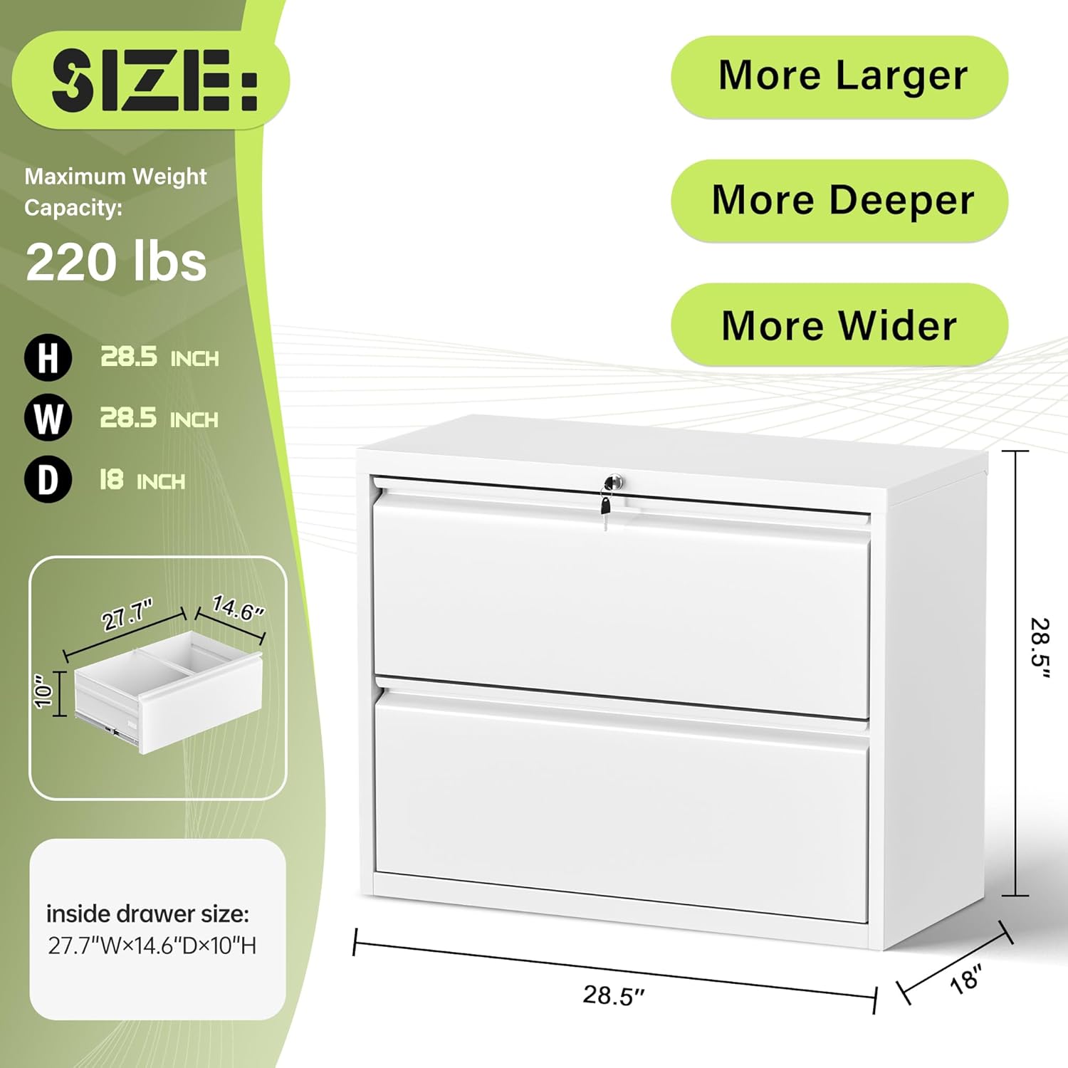 Crownland Lateral File Cabinet with 2 Drawers, 28" W Metal Lockable Office File Cabinets for Home Office- Stores Letter/Legal/A4/F4 Files(White)