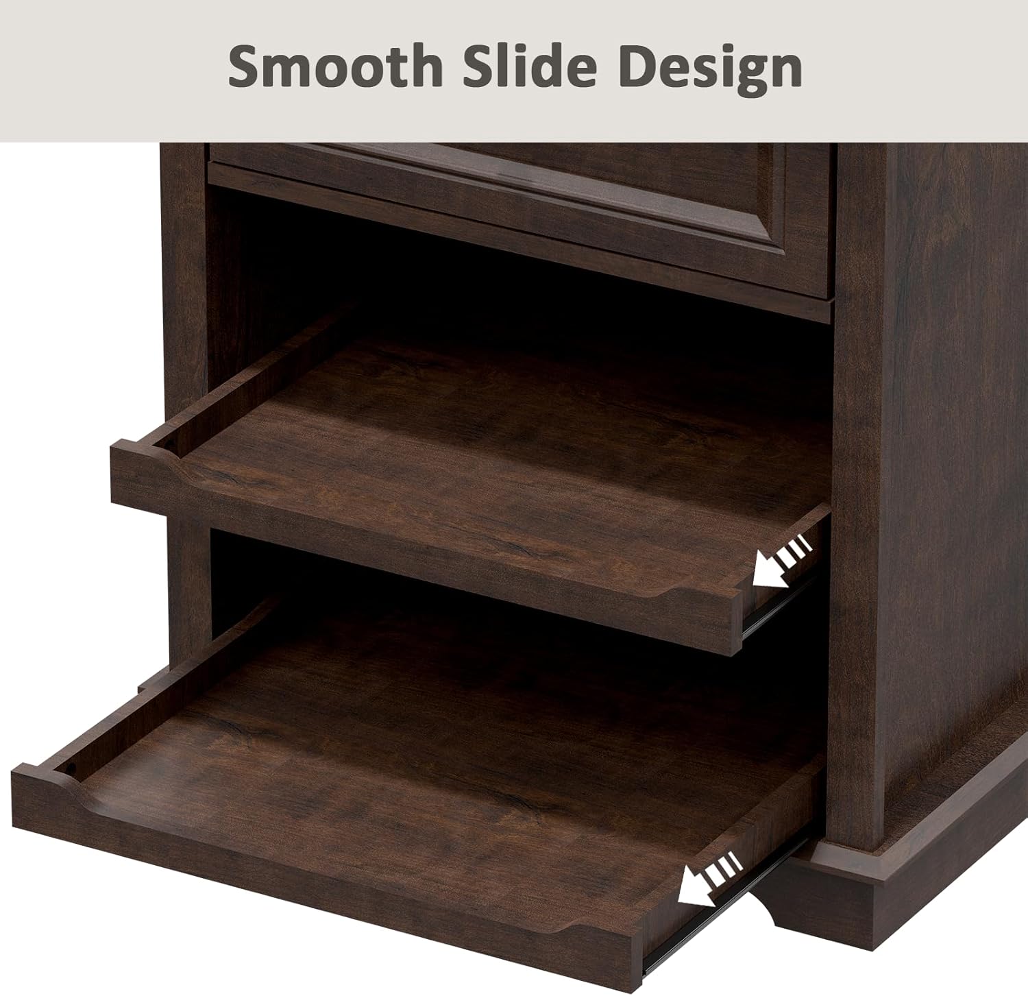 - Versatile & Spacious Storage Solution-This innovative fusion of a classic chest of drawers with a generous keyboard cabinet offers ample room to stow away storage baskets, everyday items, numerous briefcases, blankets. The adaptability of the cabinet's shelves, being adjustable, empowers you to tailor your storage area to your evolving needs.