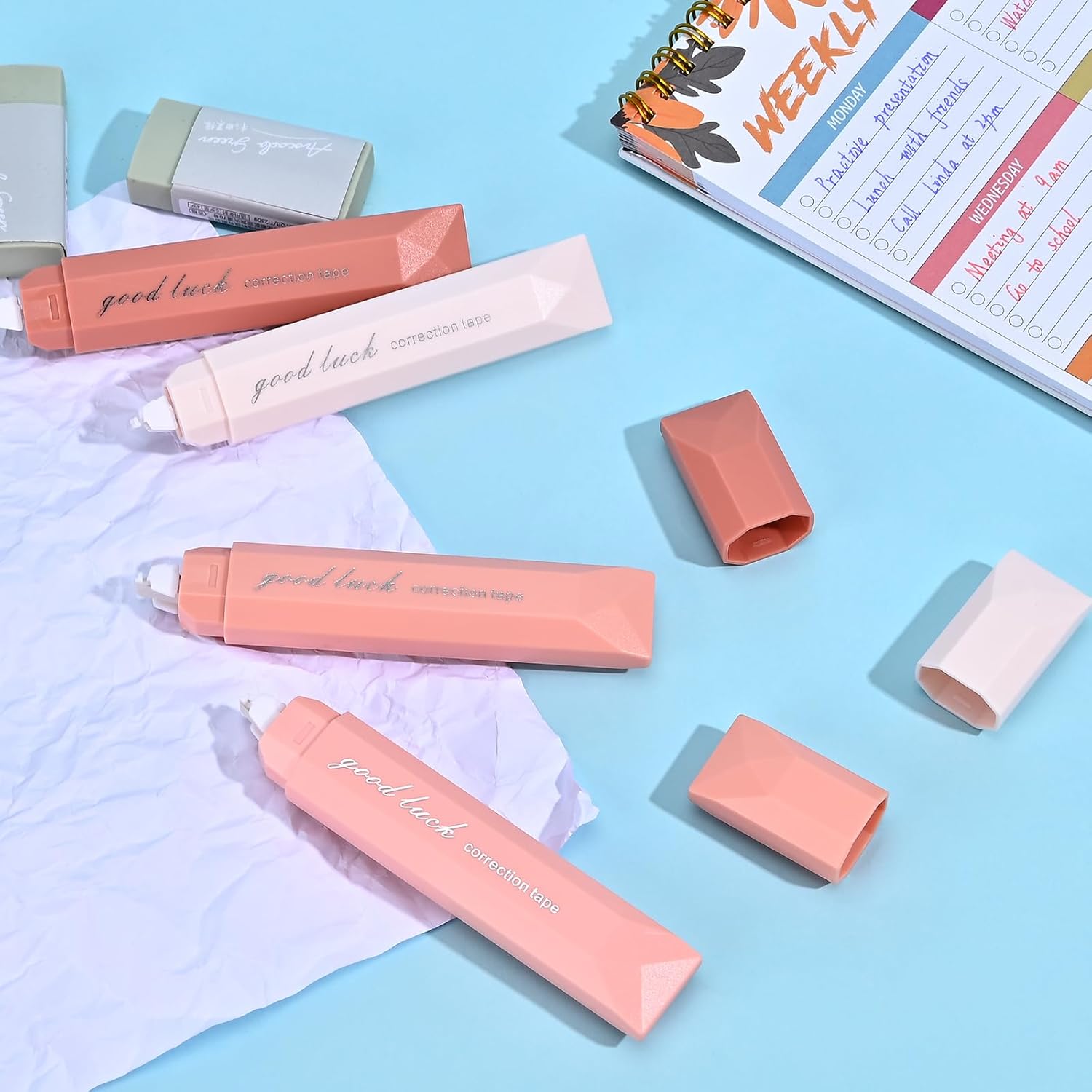 - Versatile Applications: These cute white correction out tapes can apply to gel pens, marker pens, ballpoint pens, pens, etc. They are well served as school supplies and office supplies. The gradient color makes it a great present for your family and friends
