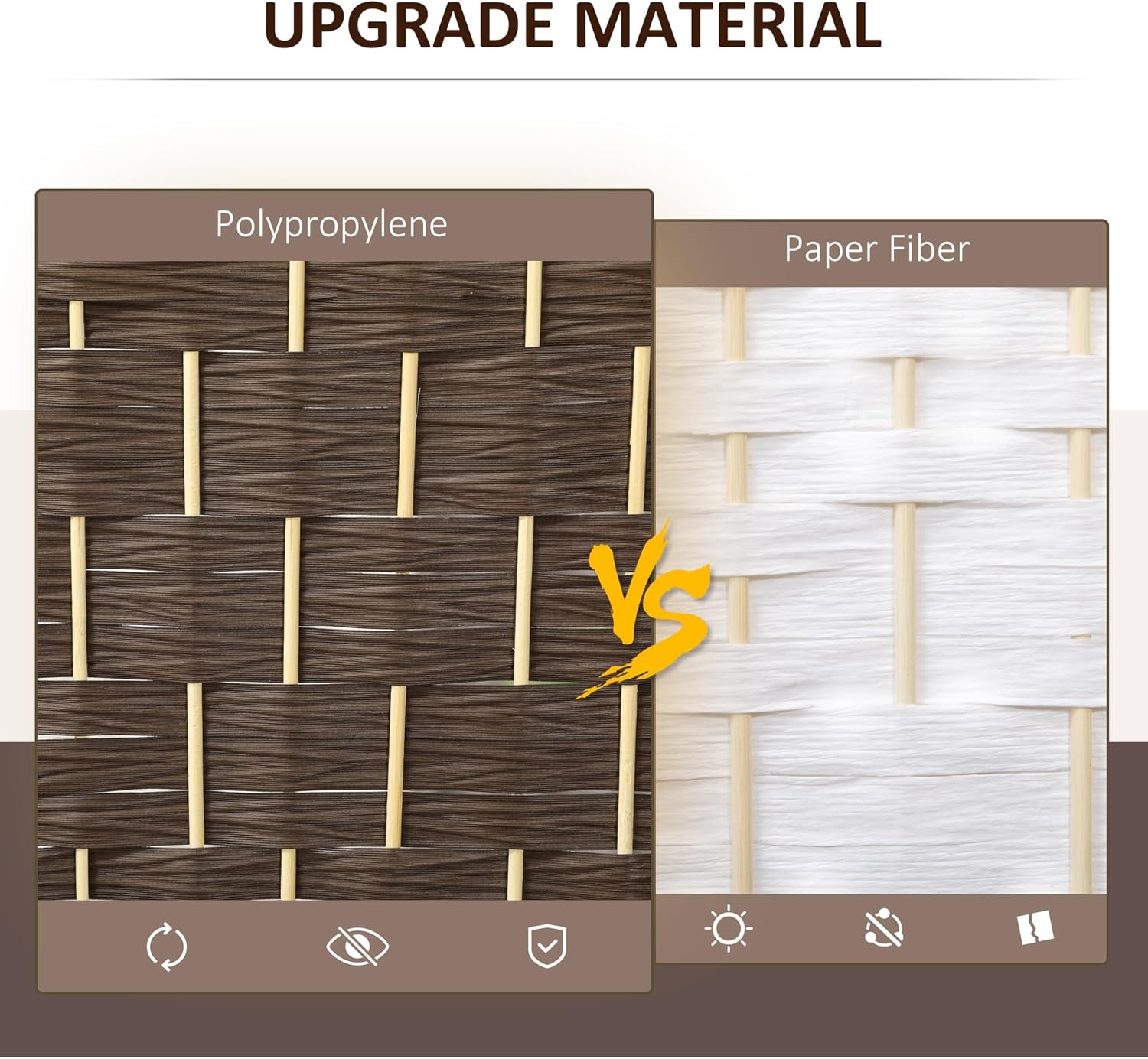 HOMCOM 6 Panel Room Divider, 6' Tall Folding Privacy Screen, Hand-Woven Freestanding Wall Partition for Home Office, Bedroom, Brown