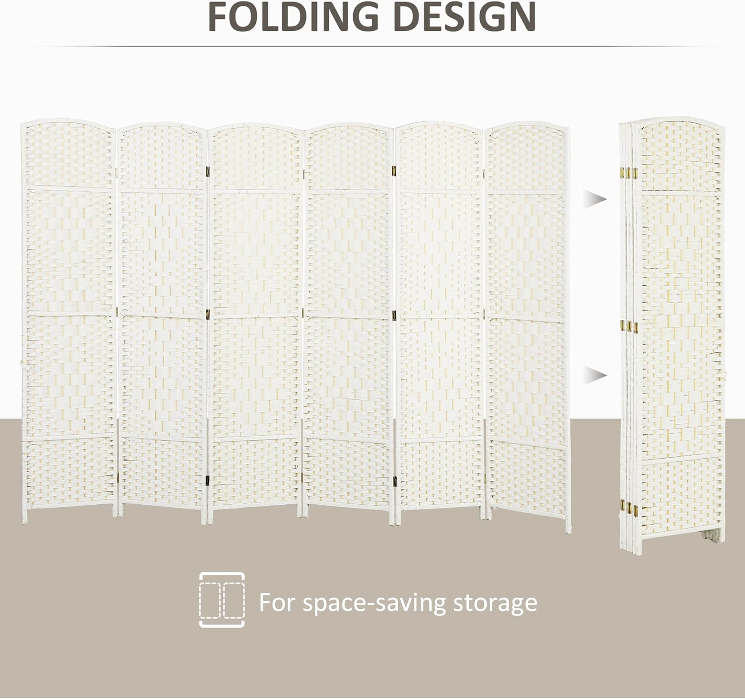 HOMCOM 6 Panel Room Divider, 6' Tall Folding Privacy Screen, Hand-Woven Freestanding Wall Partition for Home Office, Bedroom, White