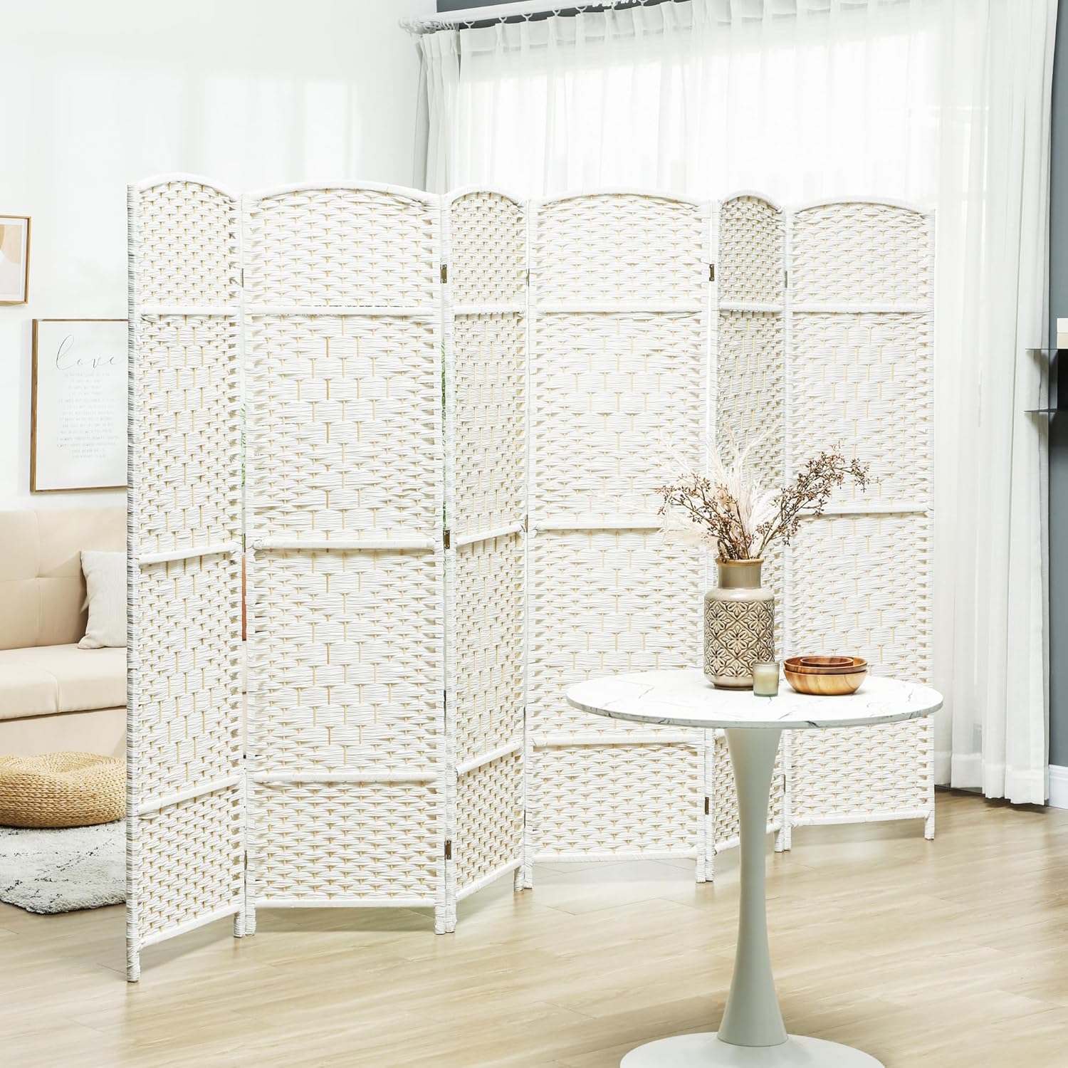 - Foldable Design: This six-panel temporary wall features a folding design with fifteen metal hinges. It offers a convenient way to customize your space, while lightweight construction makes it easy to move to any room.