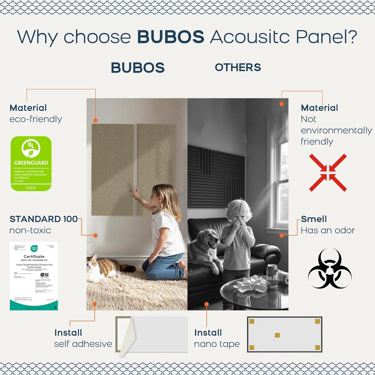 BUBOS 4 PCS Acoustic Panels,23.6''x11.8'' Fabric Soundproof Wall Panels,Self-adhesive Sound Absorbing Panels for Studios, Office, Home Theater,Fabric-Clad Jute