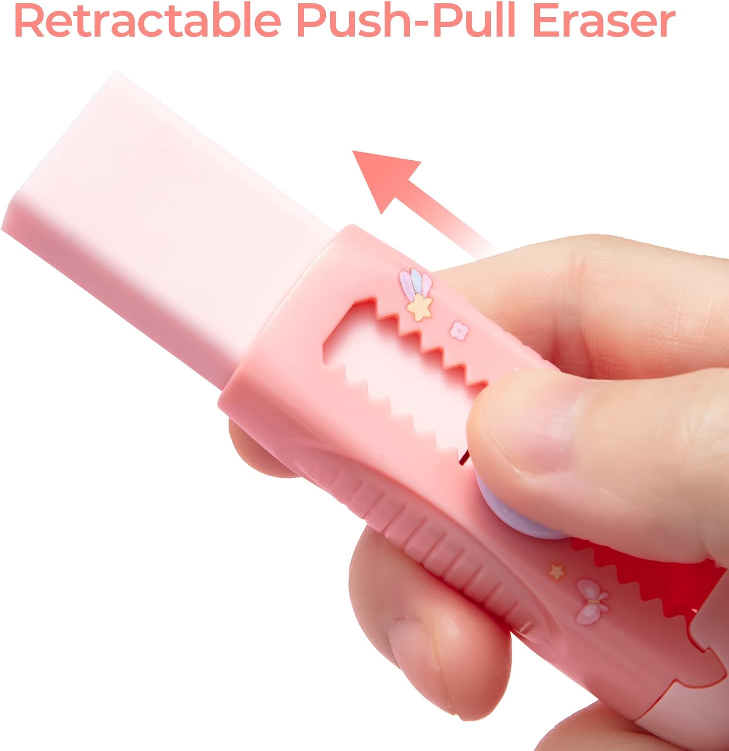 - 【Ideal Prize Choice】: The Retractable pencil eraser is easy to push and pull. Not easy to break, comfortable to hold, suitable for children. They're perfect as incentives for good behavior, rewards and a fun addition to classroom prize boxes. You can also send them as great stationery birthday party favors.