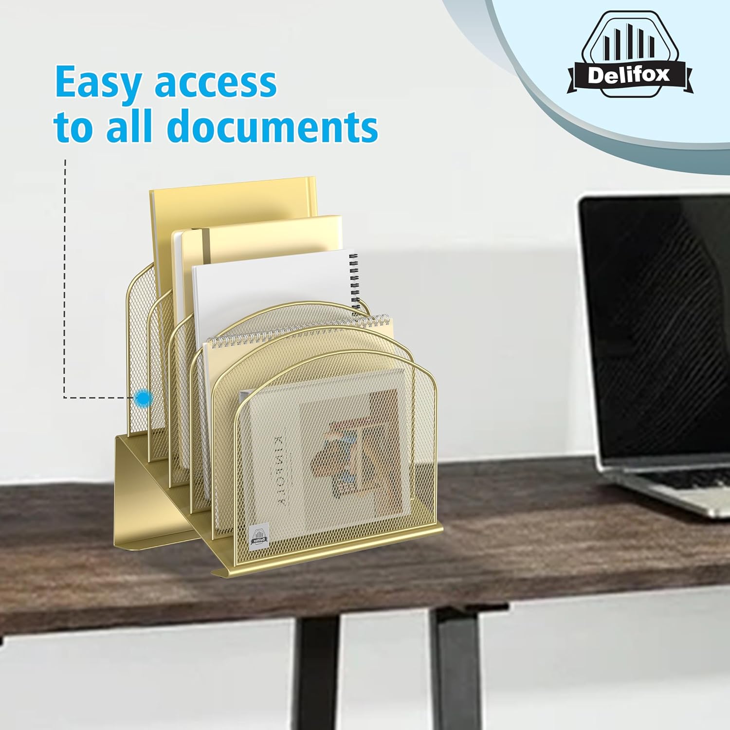 - ▶ SUFFICIENT SPACE FOR STORAGE. Delifox 5-compartment desktop file organizer is large enough to hold and classify many document or papers so as to eliminate worry of document run-off and keep track of files, folders, and other important papers