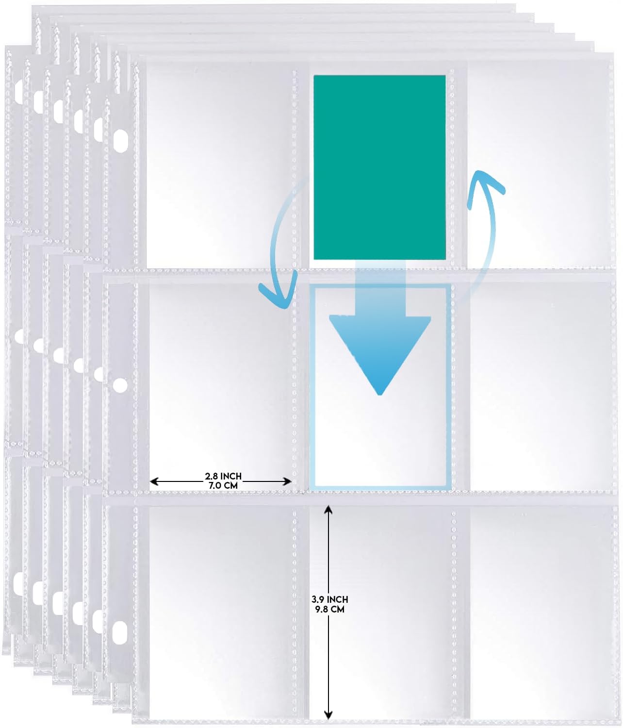 1800 Pockets Trading Card Sleeves, Premium 9-Pocket 100 Pages, Double-Sided Baseball Binder Sleeves, Protectors Binder Sheets for TCG Card Storage - Fits 3 Ring Binder (100 Sheets)