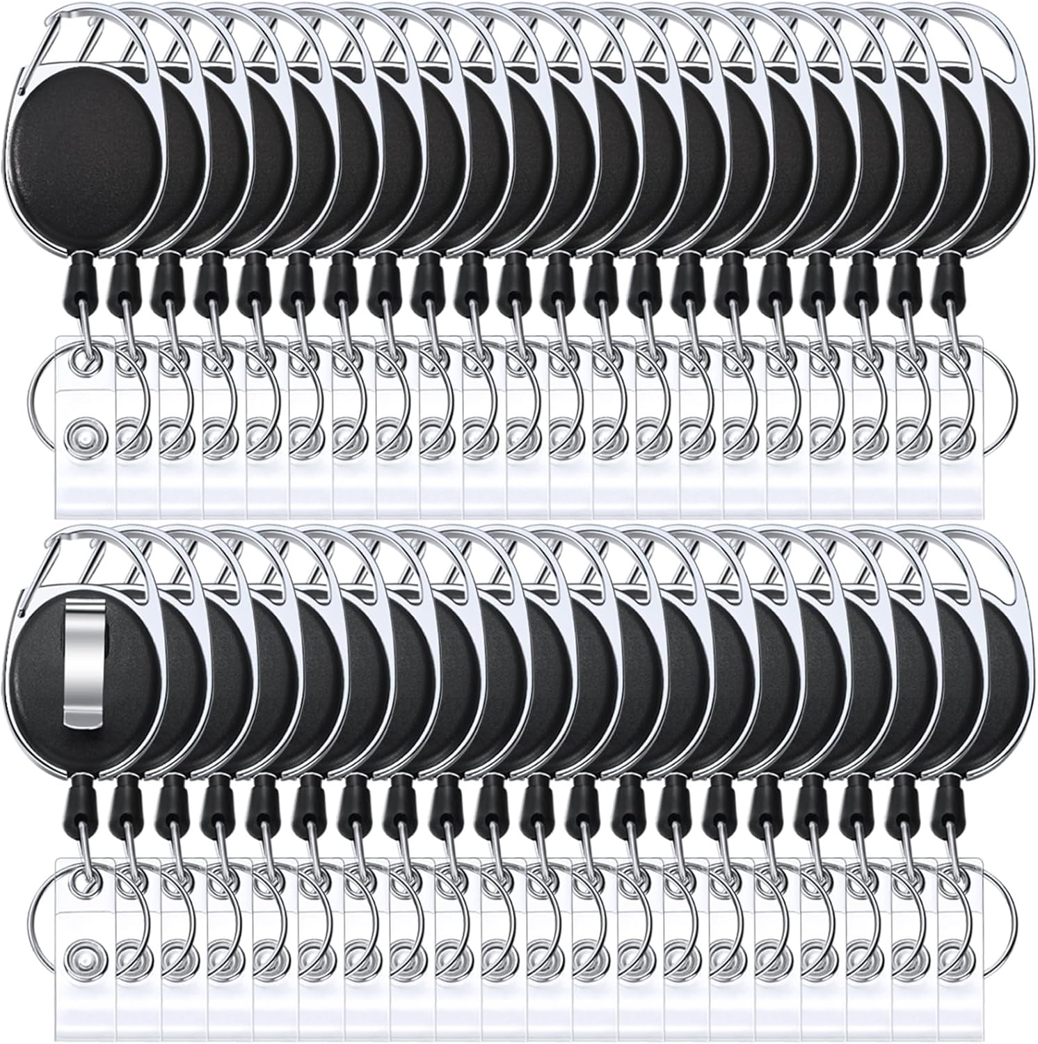 - Package: you will get 40 packs of retractable badge clips, featuring clip, stainless steel key ring, vinyl snap strap and plastic cover, clip attachment for effortlessly and quickly fastening to belt loops, straps, backpacks, bags and more, allow a quick and easy way to scan or swipe your badge
