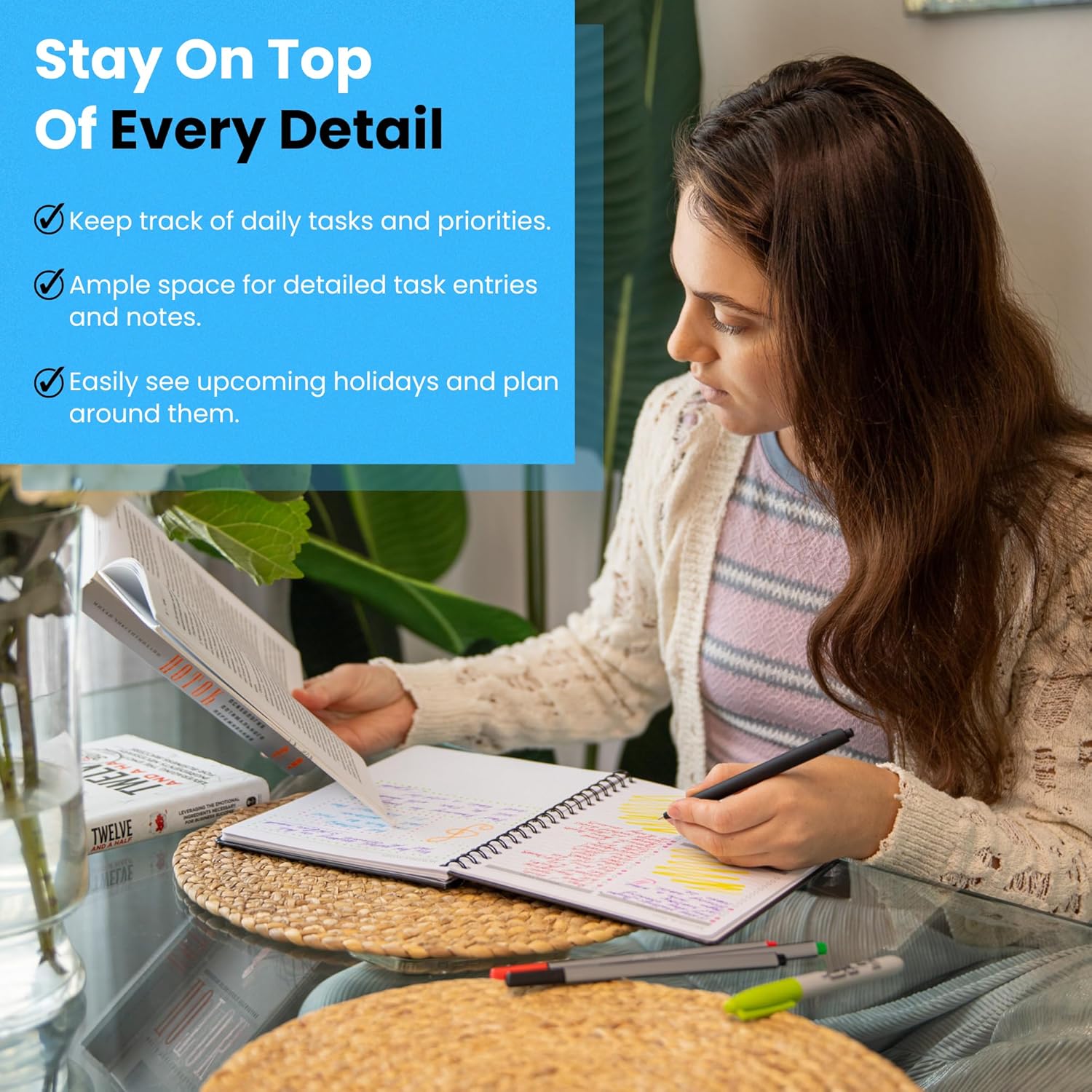 - MODERN AND COMPACT STYLE - Enjoy a thick hardcover offering a gentle aesthetic. The planner weekly notebookโs perfect size ensures easy portability, making it convenient for daily use.