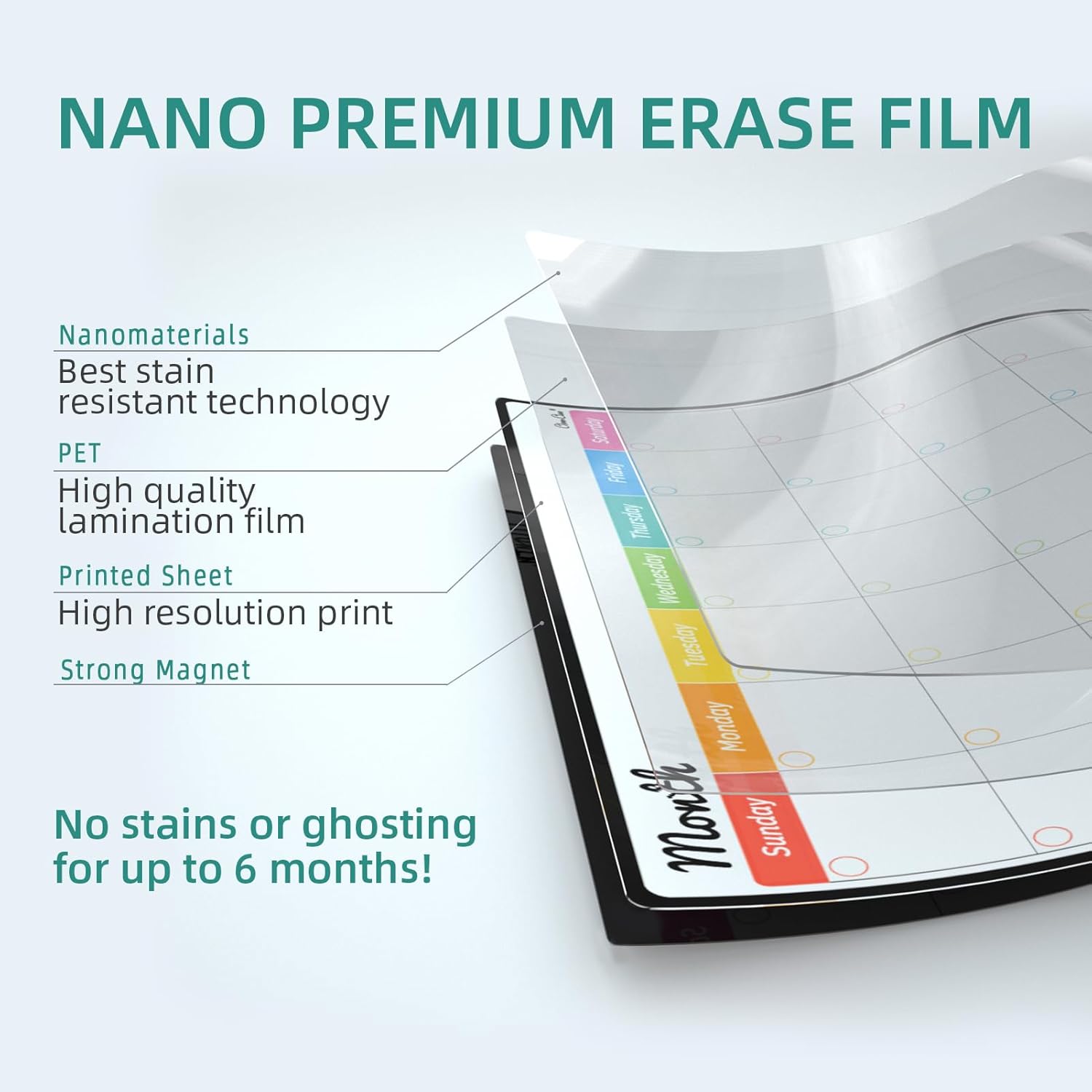 - Erases easily - Our calendars use premium nano erase film, making it incredibly easy to wipe off notes, even those that have been written for a long time. No residue, no fuss.