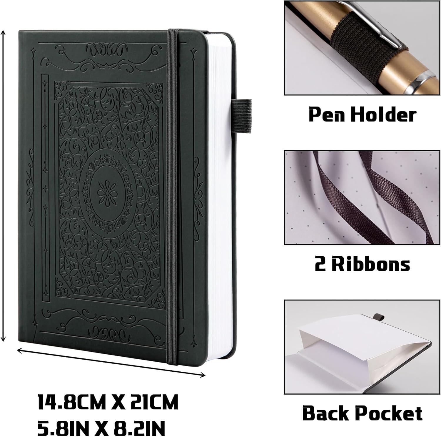 - A5 Hardcover Dotted Journal: The A5 Dot Matrix Notebook is the perfect combination of style and function. With an elasticated pen loop, two ribbon bookmarks, signature page, lanyard, and expandable inner back pocket, making this dot notebook a must-have for anyone looking to stay organized. Jot down your fun facts and thoughts in this special bullet point dot journal.