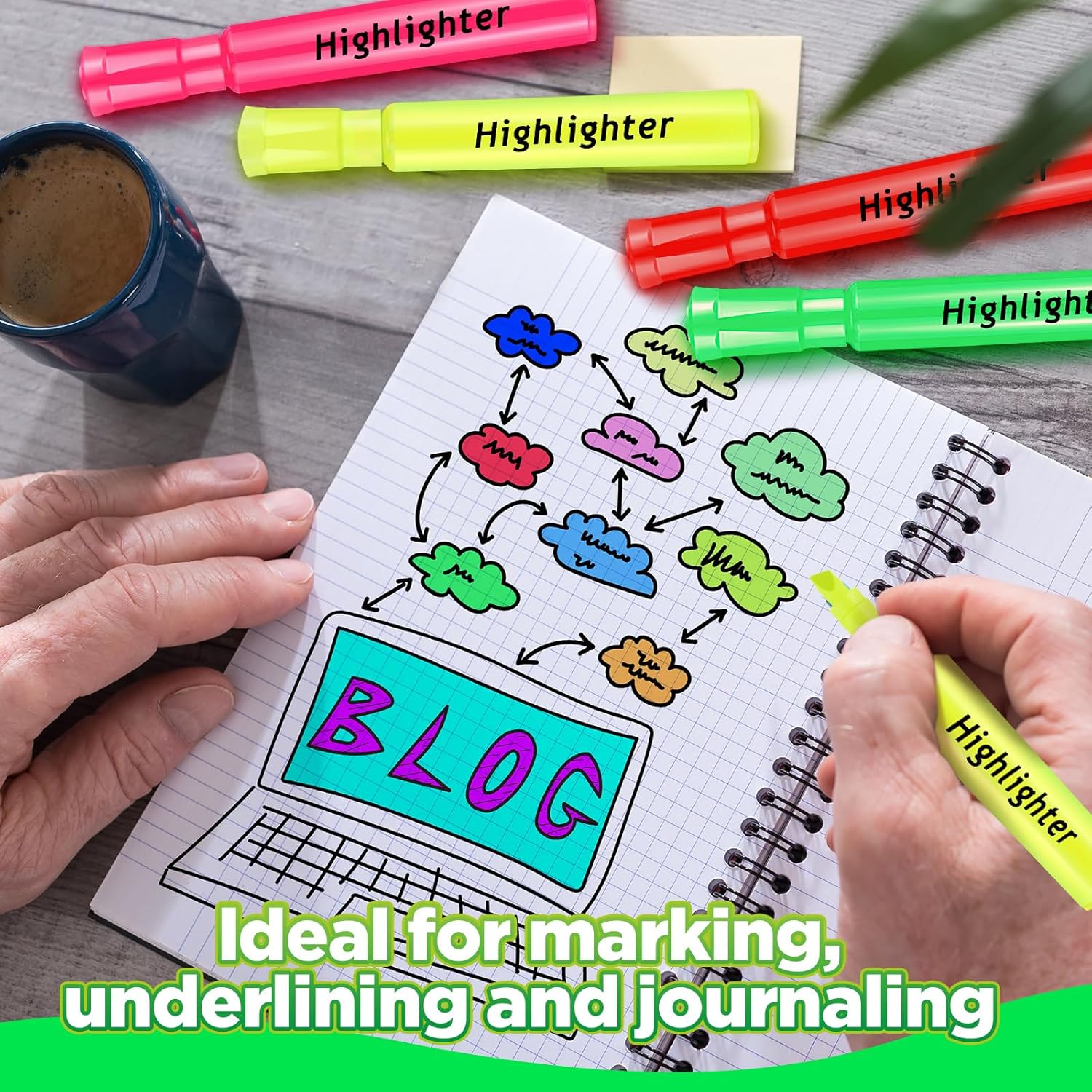 - Thoughtful Design Details: the highlighter come with a quality chisel tip, providing wide highlighting and thin underlining, which you can create thick and thin lines; And the fitting cap protects the nib when not in use