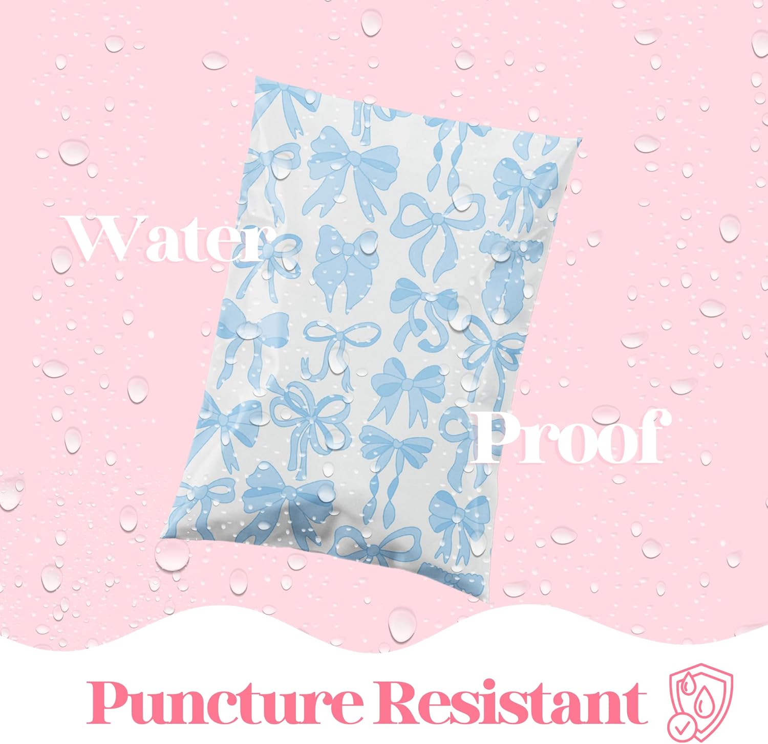 14.5x19 Designer Poly Mailer 100 Pack Heavy Duty Waterproof Self Seal Shipping Bags for Small Business Large Mailing Envelopes Bulk Tear Resistant Packaging Blue Bows