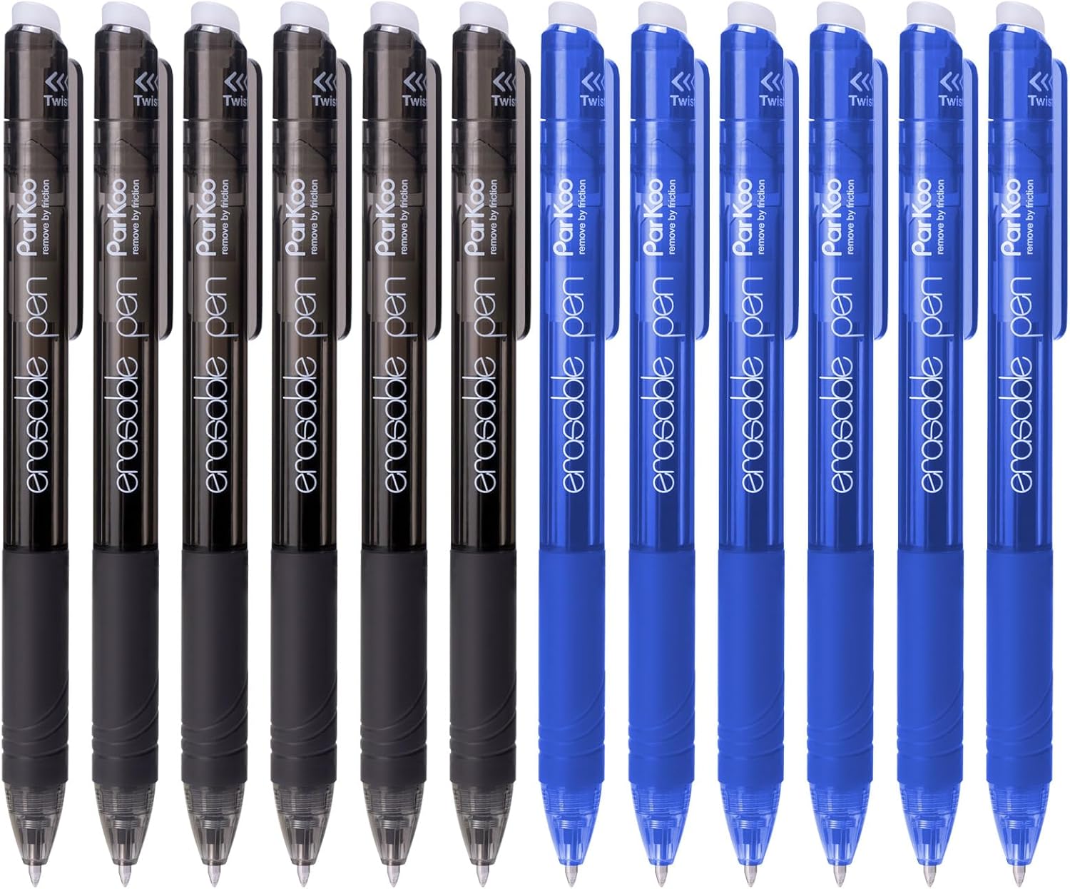 ParKoo Retractable Erasable Gel Pens 0.7mm, 6 Black/6 Blue Twist Pens Fine Point, Make Mistakes Disappear, Smooth Writing with Comfortable Grip for Journaling Drawing Note Taking