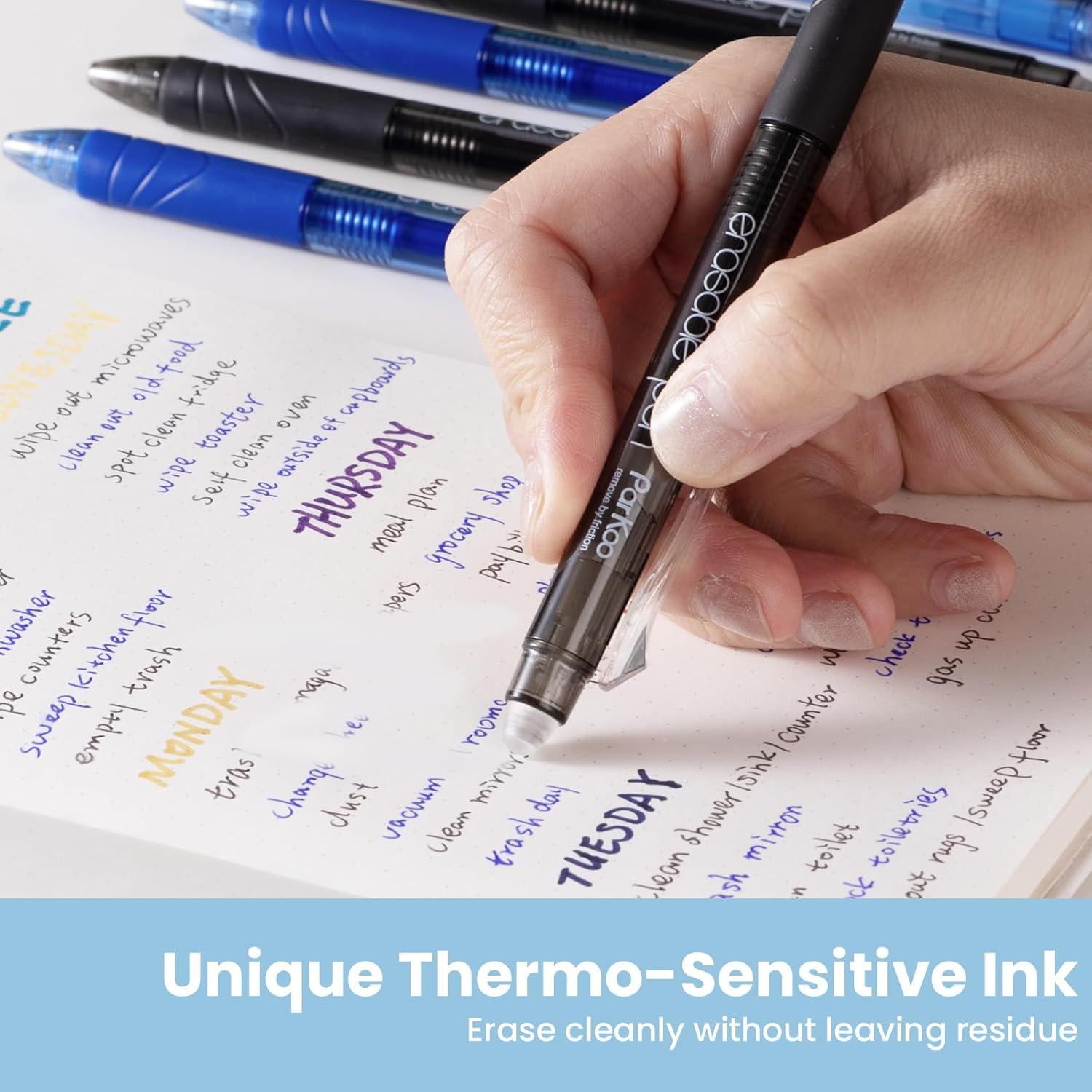 - Pens with Erasers: ParKoo erasable pens let you enjoy smooth writing while leave no room for error; Write, erase and rewrite without damaging documents; These black erasable pens works great for note taking