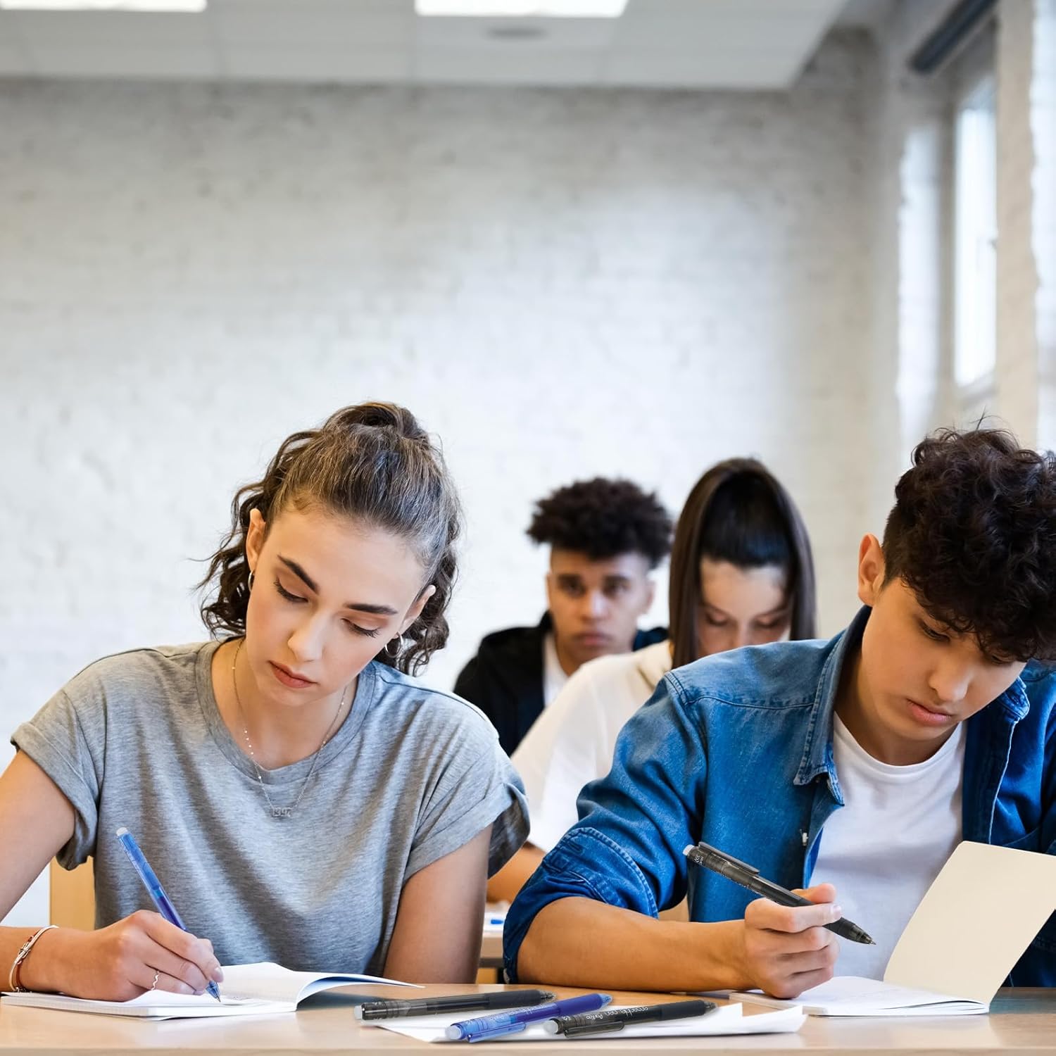 - Effortless Correcting: New thermos-sensitive ink that disappears with erasing friction using the rubber eraser on the top of the pen with no residue and no tearing of paper; These pens write like normal gel pens, and erase like pencils