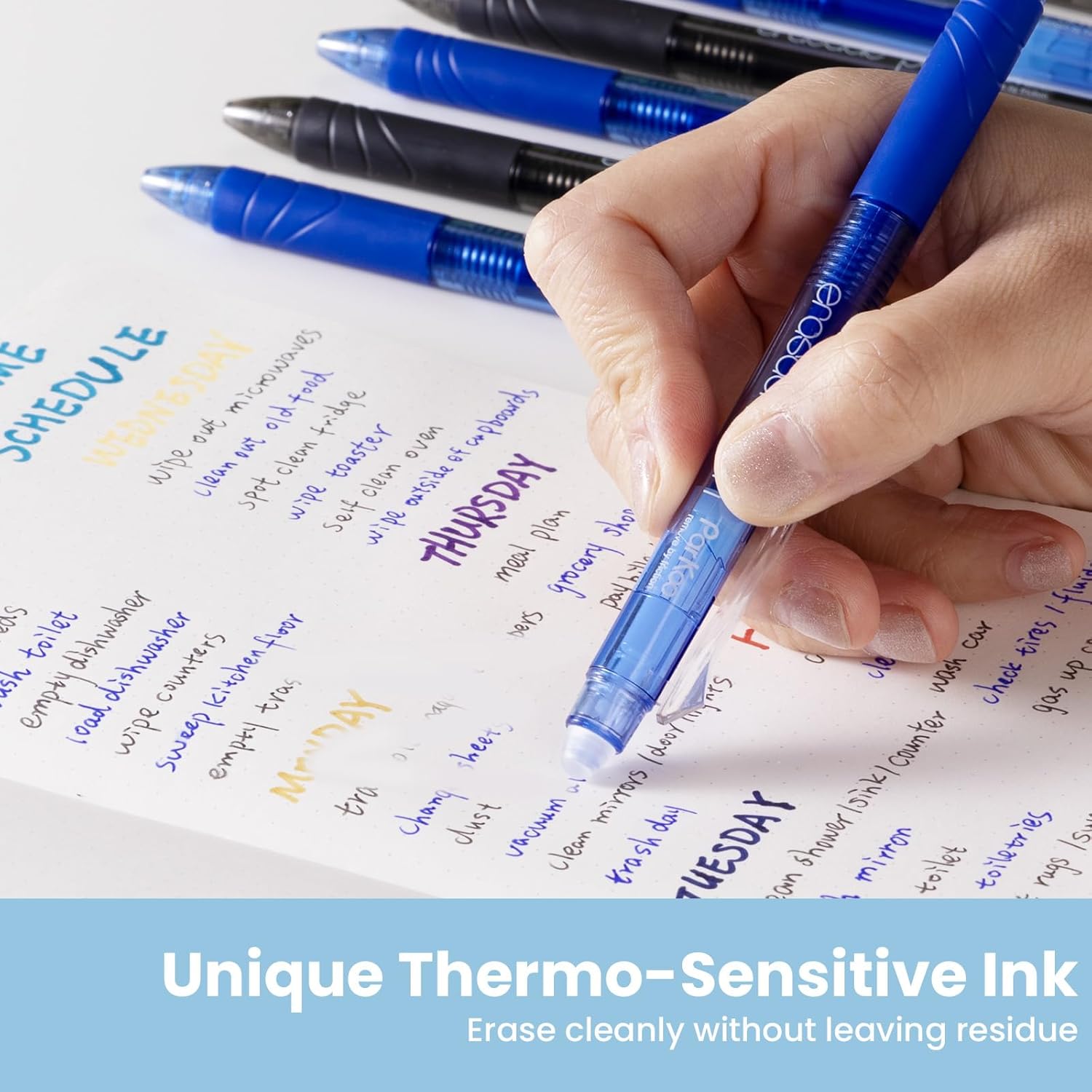 - Dual-Color Versatility: 10 black erasbale pens + 10 blue erasable pens, the smudge-resistant gel ink ensures crisp lines, while color-coding helps prioritize tasks in journals, calendars, or editable study guides