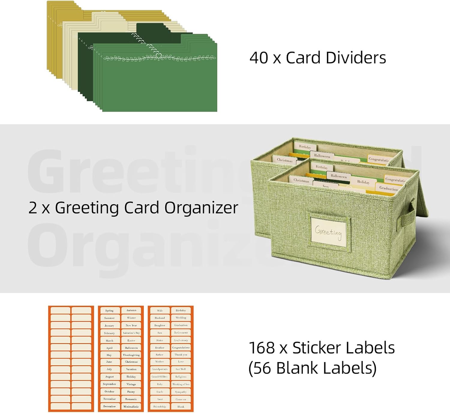 - Make Organizing Easy: The dividers feature double-sided labels for flexible use. You can effortlessly categorize cards by holidays, recipients, and more with the pre-existing labels. Alternatively, the blank stickers allow you to create your own custom categories. This makes it the perfect choice for efficiently storing and sorting cards