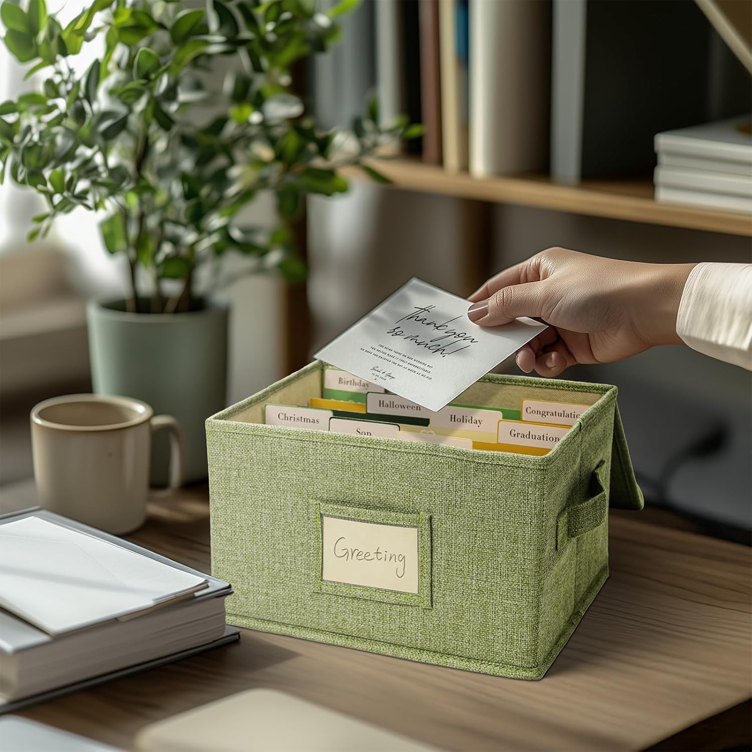 Vienrose Greeting Card Organizer Storage Box with 20 Removable Dividers, 84 Self-stick Labels, Perfect for Photos, Envelopes, Scrapbooking, Paper, Stickers Holder 2 Pack Grass Green