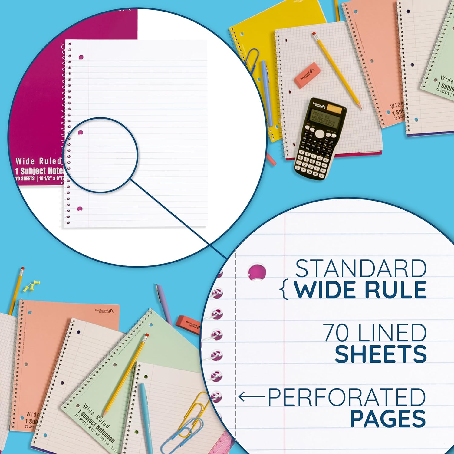 - Classic Wide Ruled Format โ Each wide ruled notebook features spacious lines and durable spiral binding, great for students, teachers, or anyone who prefers wide ruled paper.