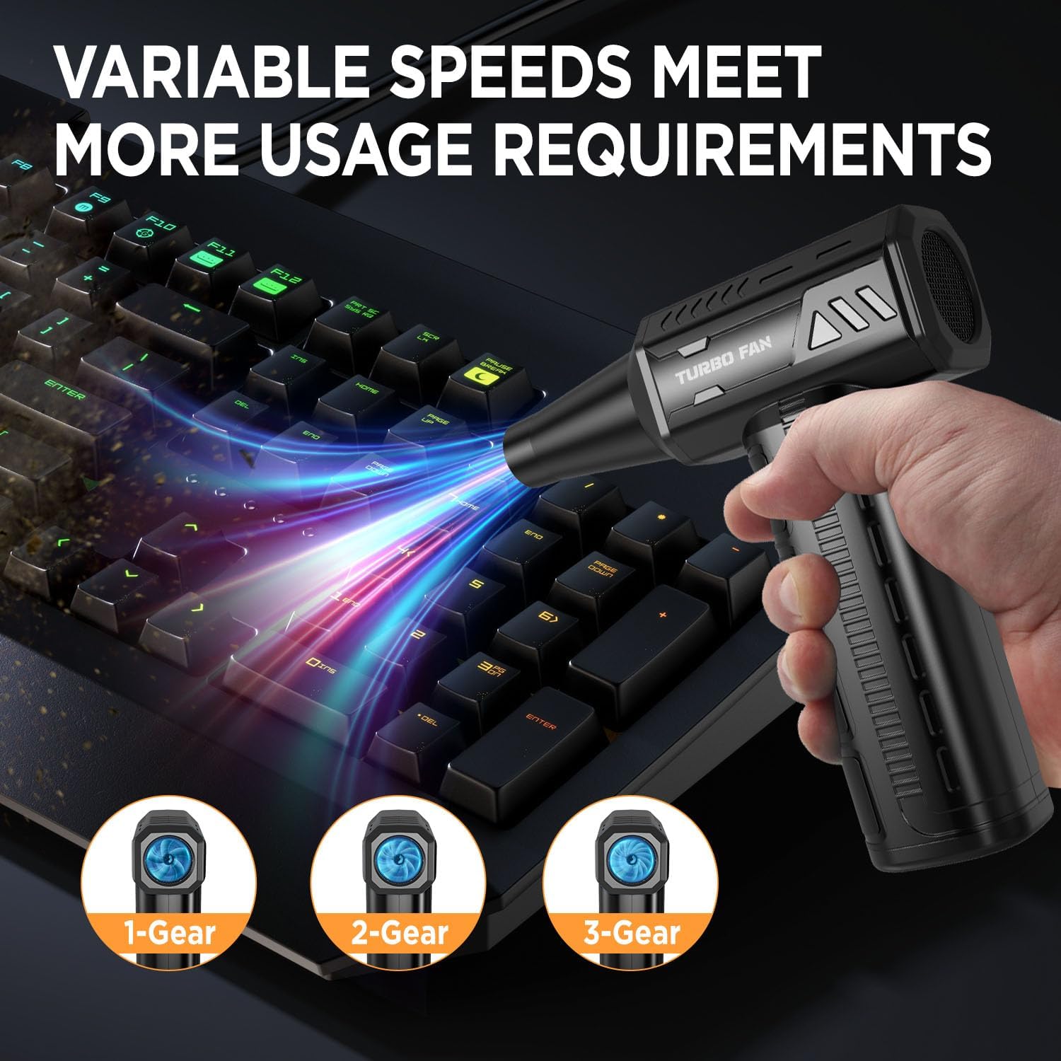 - 【Upgraded High-Capacity Battery & Fast Charging】 The rechargeable air dusters have built-in 10000mAh batteries, which provide enough power for long hours of use. These batteries are temperature, current, and short-circuit protected, so the fan air speed will not decrease even after prolonged use. At the same time, they support fast charging and have a Type-C connector, making them compatible with a variety of charging methods, including charging from a car or mobile power source.