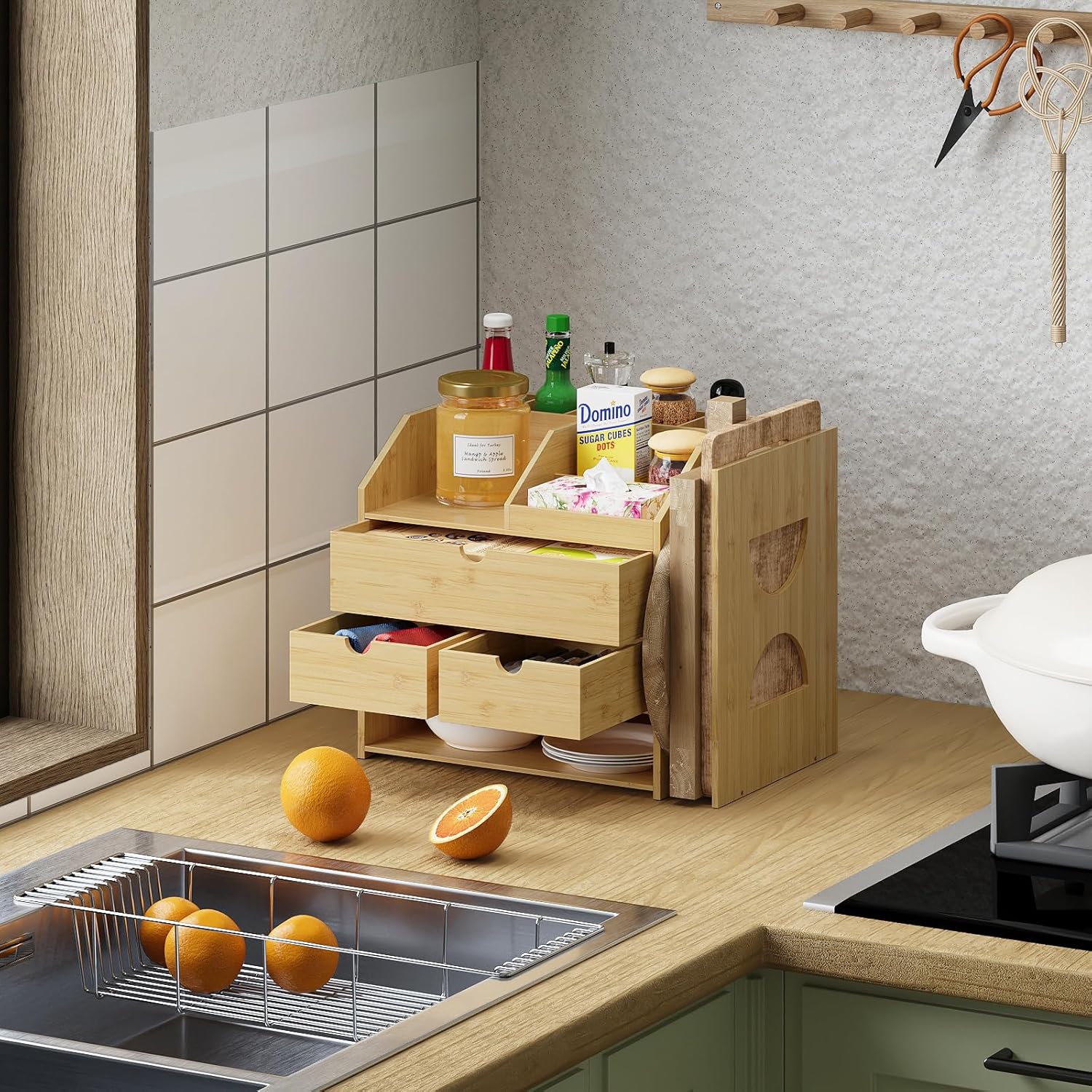 - Natural Bamboo Material:The elegant desktop storage is made of natural bamboo,which is safe to use, structure cute and stable,provides a smooth and sustainable touch. The classic natural color makes it the elegant decor for any space and reliable for long-term use