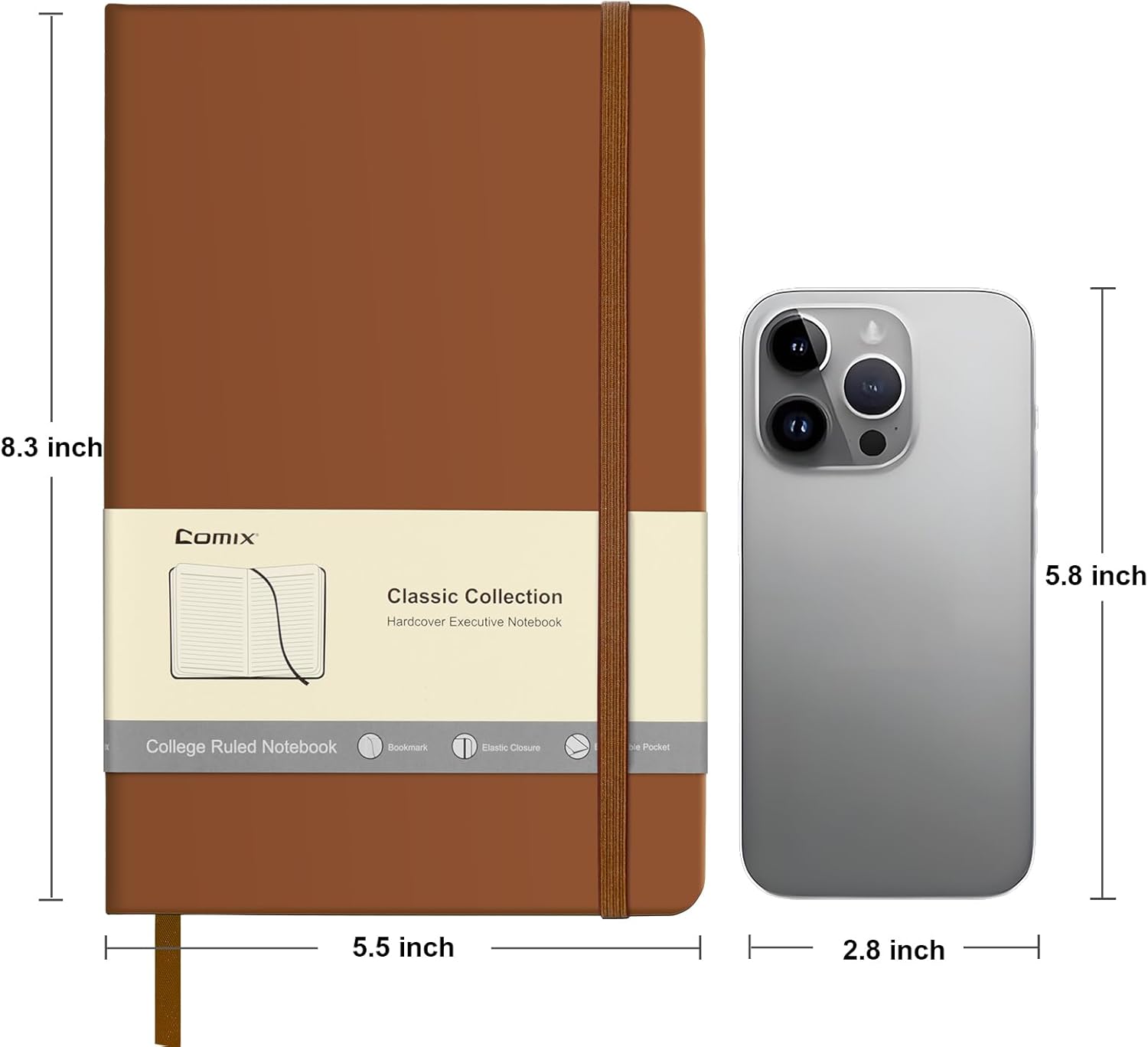 Comix 6 Pack Lined Journal Notebooks for Work, 240 Pages, 5.5"x8.3", Brown, Hardcover, A5 Medium College Ruled, Journaling Notebooks for Notes-taking, Fits for Office School Home