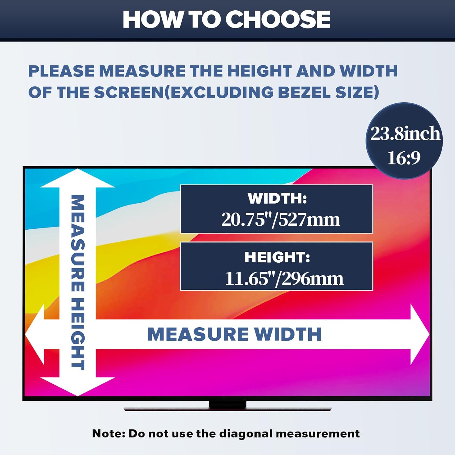 - Computer Screen Privacy Shield 23.8 Inch: This computer privacy screen is designed to fit 23.8 Inch computer Monitor - 16:9 aspect ratio, privacy screen for computer monitor 23.8 inch Width: 20.75" (527 mm), Height: 11.65" (296 mm), Diagonal: 23.8" (604.5 mm), perfectly compatible with HP, Samsung, Dell, Lenovo, Acer, ASUS, LG and other monitor brands. Please verify your computer screen's width and height size, not recommended to based only on the diagonal size