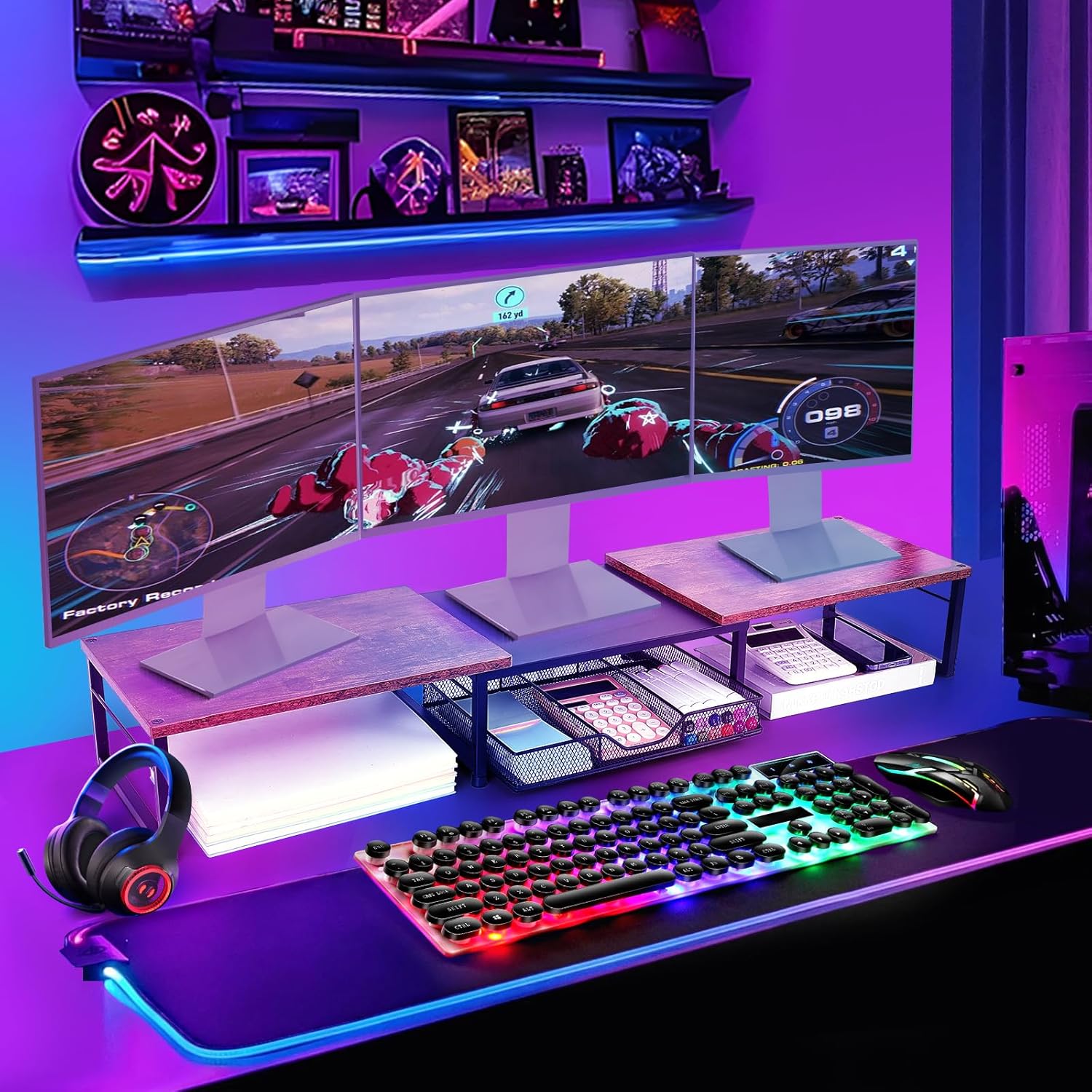 - 【Unlock Extra Space】Raise your monitor height with this monitor riser to free up space underneath. Store your keyboard, mouse, files, printer, gaming items, etc. neatly. Fits perfectly in any home, office, or dorm. Maximize desktop space and master desk organization