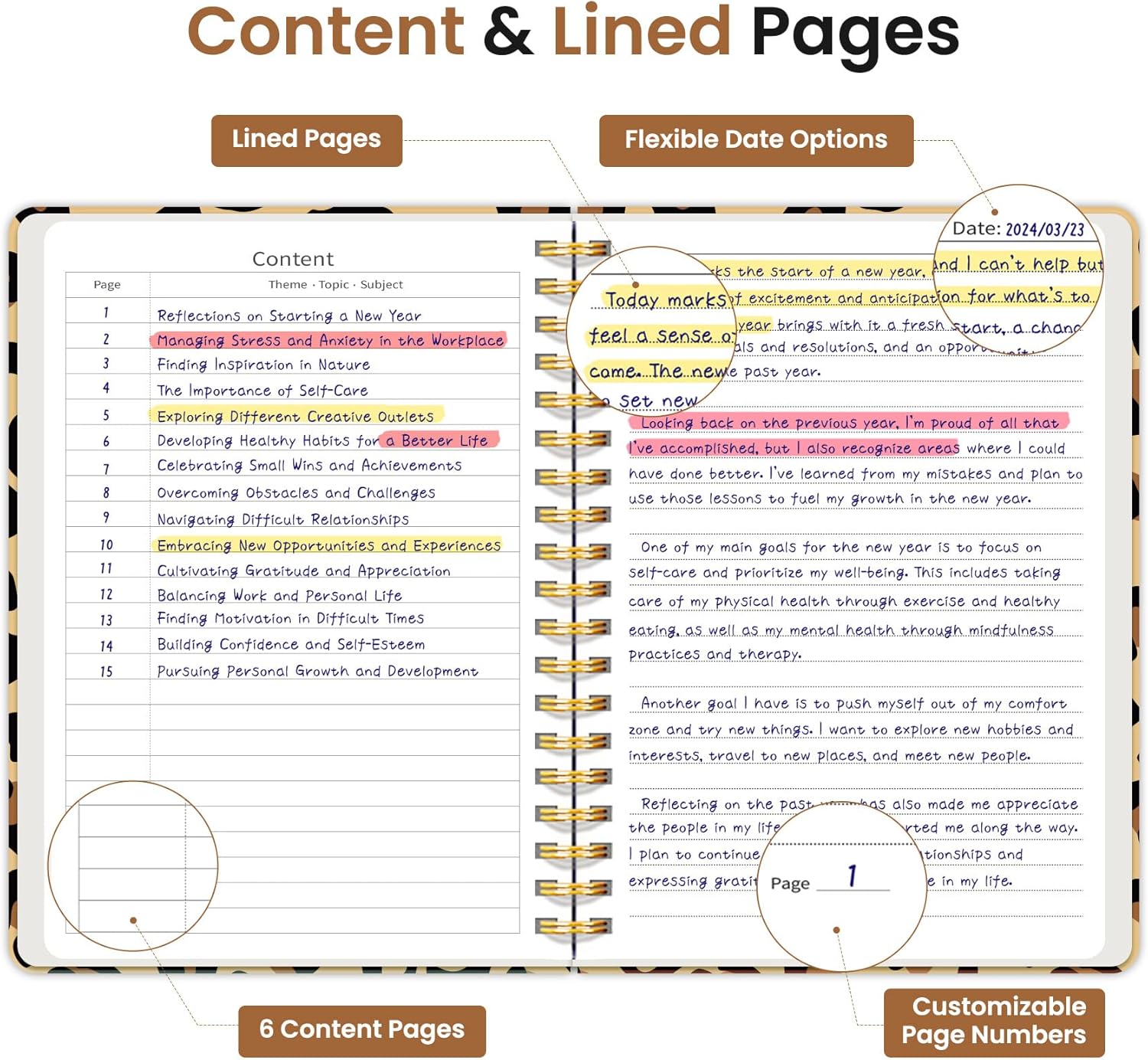 - Structured College-Ruled Pages: Featuring 7mm college-ruled lines, this journal notebook helps keep your writing organized and legible. The evenly spaced lines are perfect for structured notes, work lists, or detailed writing, making it an excellent choice for school students, professionals, and writers alike. It also includes 6 content pages, perfect for creating an index for easy reference.