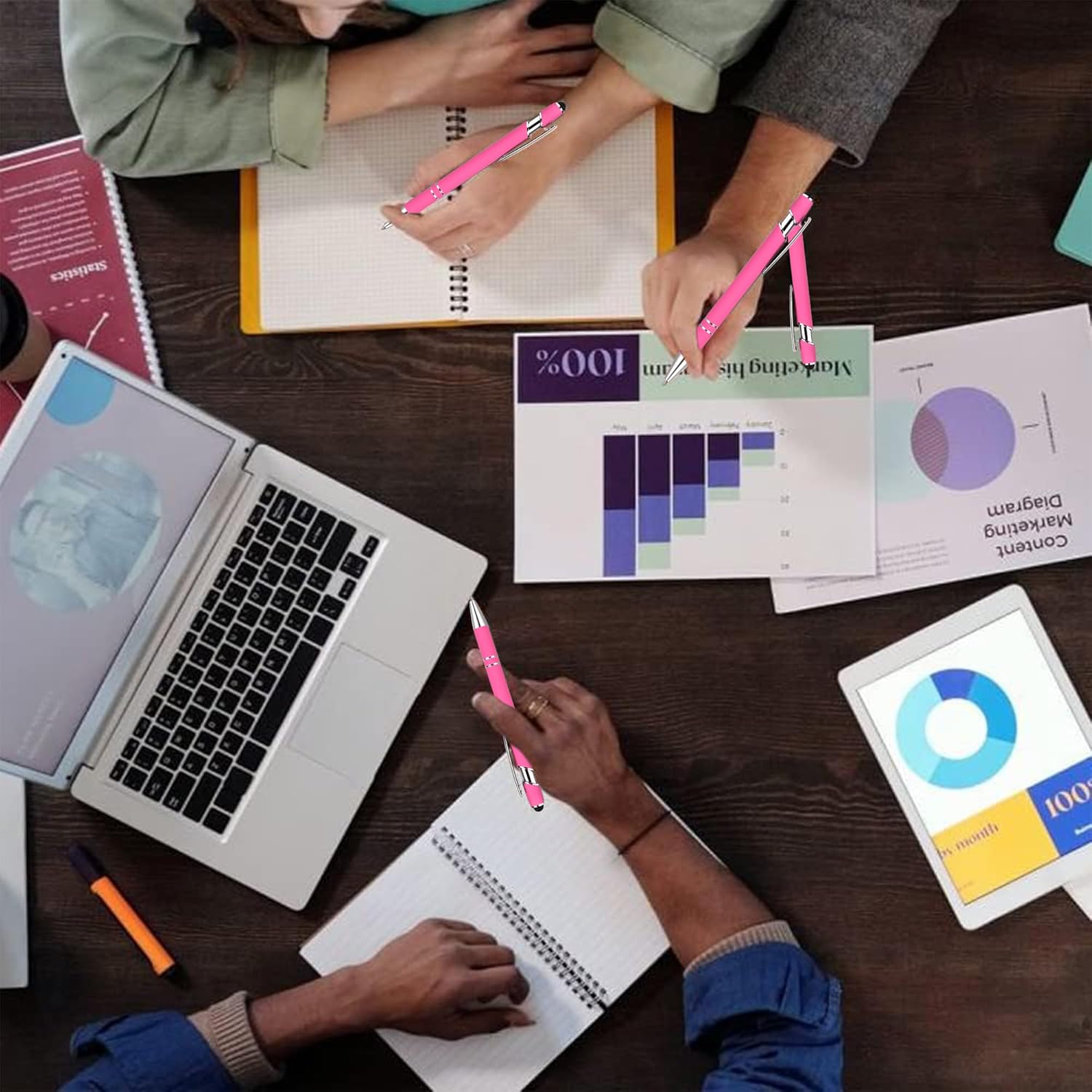 12 PCS 2 in 1 Stylus Ballpoint Pen with Stylus Tip, 1.0 mm Black Ink Metal Pen Stylus Pen for Touch Screens (Silver & Pink)
