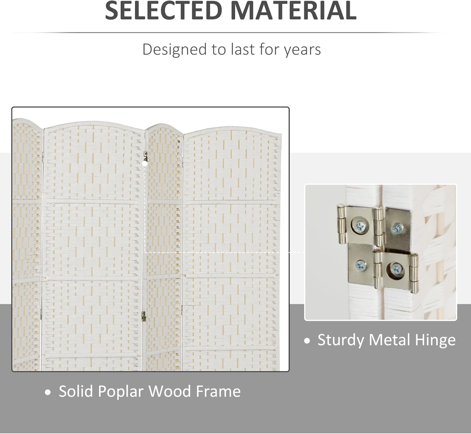 HOMCOM Room Divider, 6 Panel Folding Privacy Screen, 6FT Tall Portable Wicker Weave Partition Wall Divider for Bedroom, Home Office, White