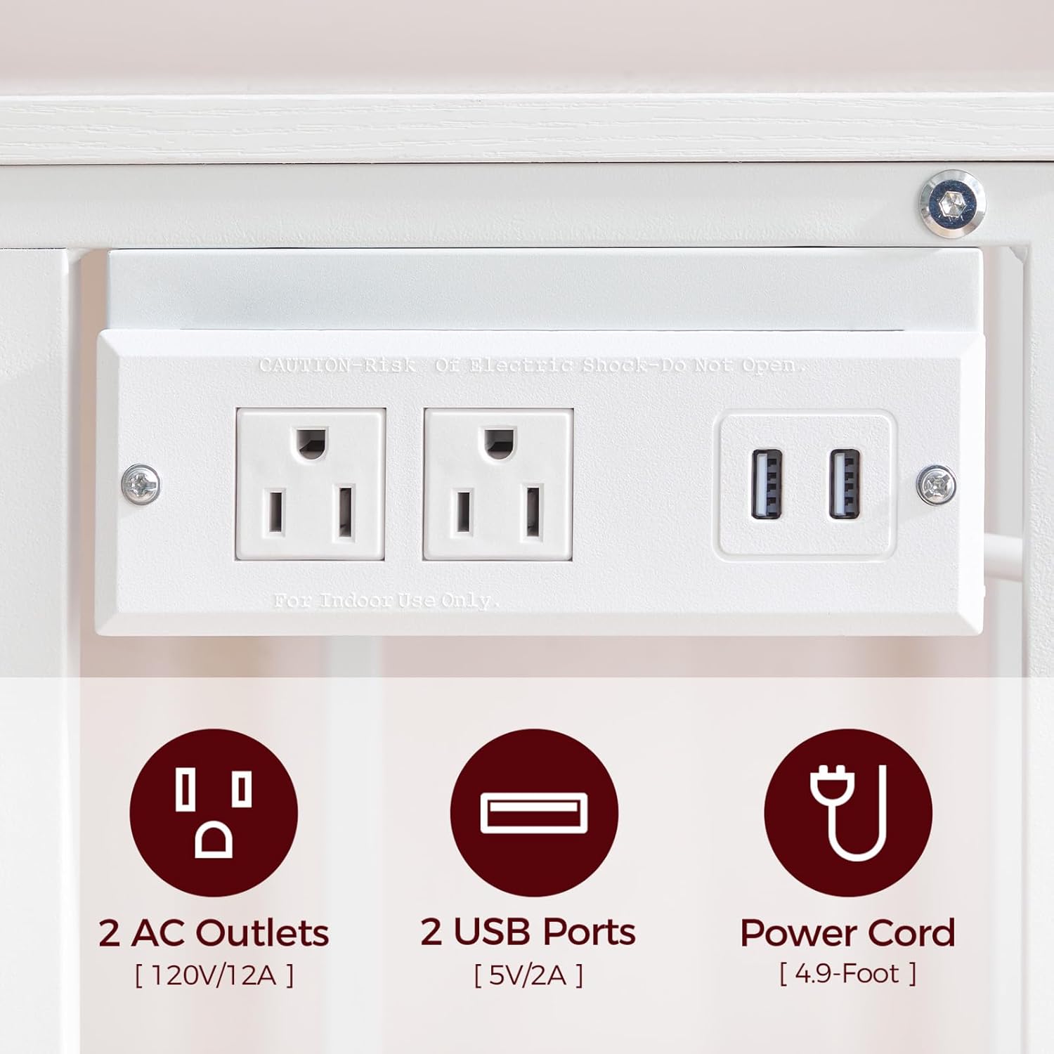 - Printer Stand with Charging Station: A practical power strip is designed beneath the top panel, providing 2 standard outlets and 2 USB ports for your printer, household appliances and other devices. The 4.9-foot power cord ensures easy access to this rolling printer cart