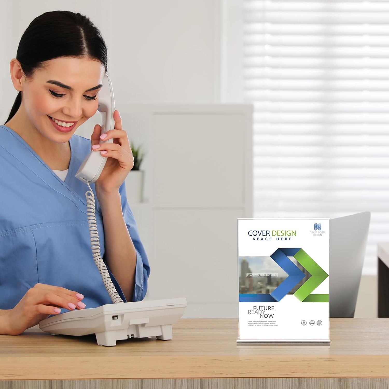 10 Pack Acrylic Sign Holder 5 x 7, Clear Double Side T Shape Acrylic Table Sign Stands for Displaying, Flyer Holder Paper Card Holder for Office Business Store Mall Restaurants