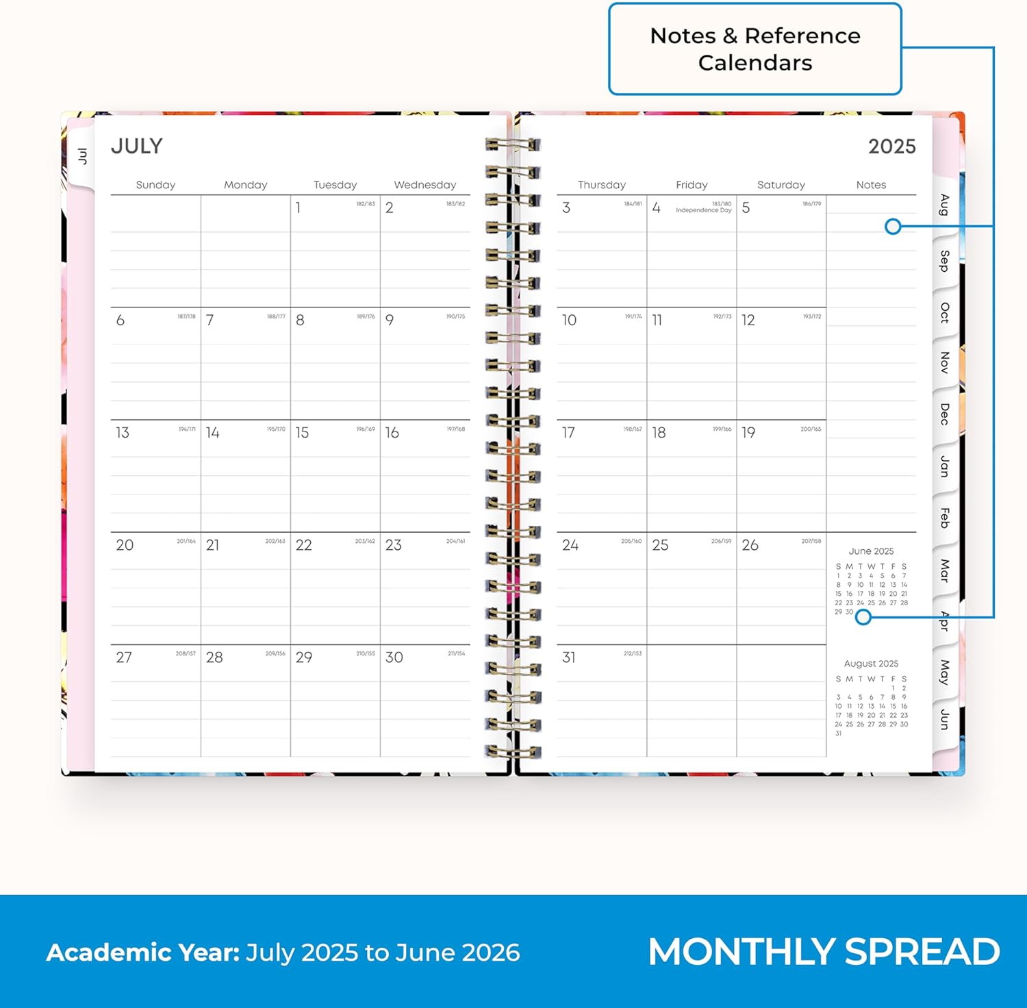- [STAY ORGANIZED ALL YEAR] July 2025 - June 2026 day planner with 12 months of monthly and weekly pages for easy academic planning and scheduling; 2 additional monthly pages (May 2025 - June 2025) are included
