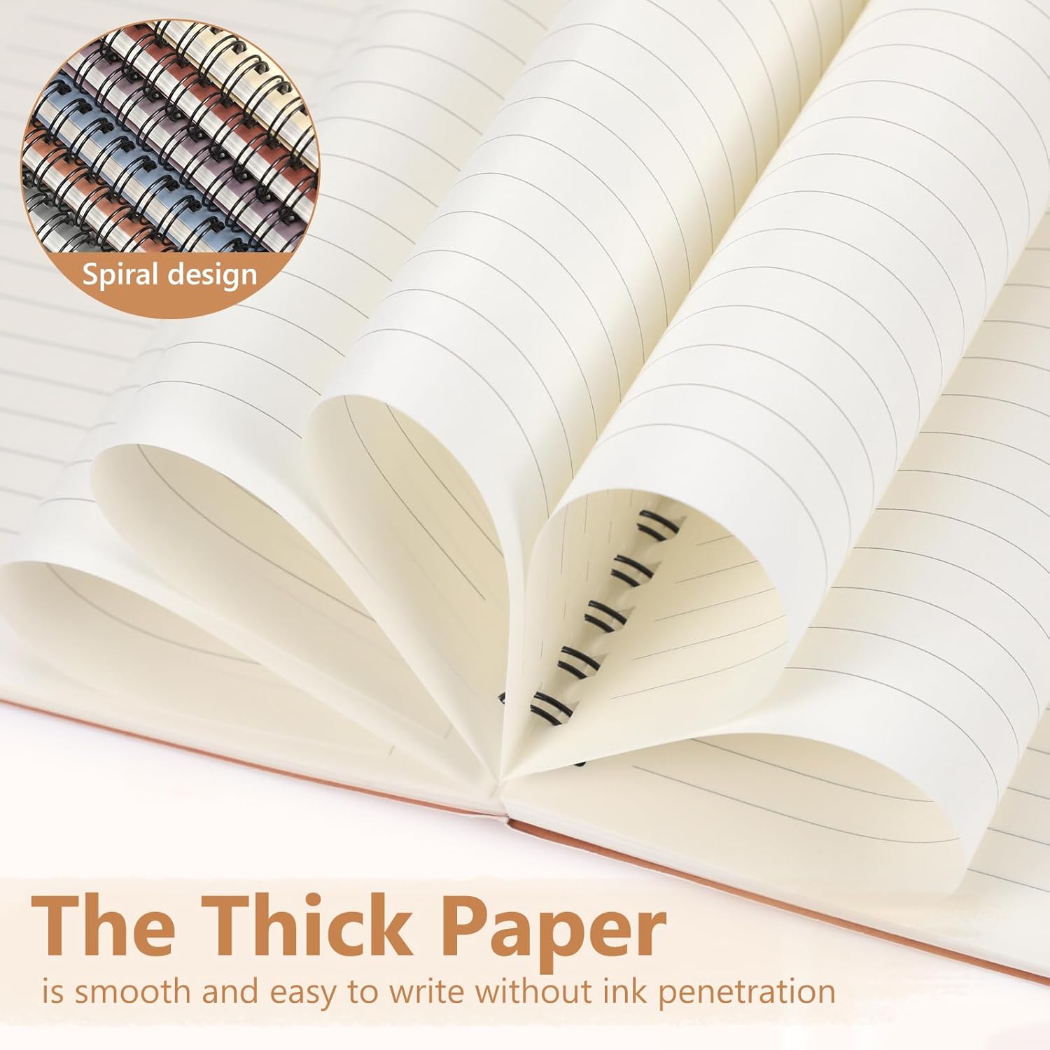 - Smooth to Write: each spiral journal notebook has 60 sheets (120 pages), and each page adopts quality 80gsm white paper, smooth and easy to write, preventing ink infiltrating into the next page, and mild colors can avoid eye fatigue and bring comfortable experience