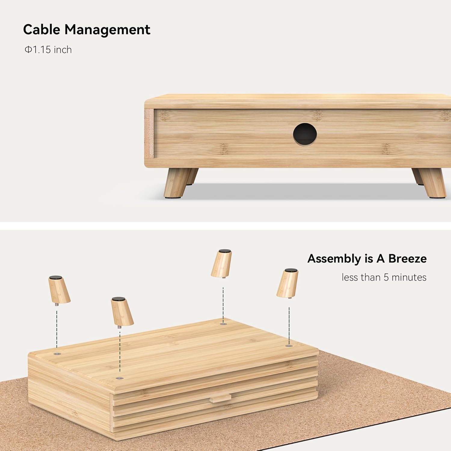 - 【Solid Bamboo & Eco-Friendly】Chemical-free compressed bamboo withstands 220lbs. Natural moisture-resistant texture, ideal for 24-inch monitors. 5X more durable than MDF