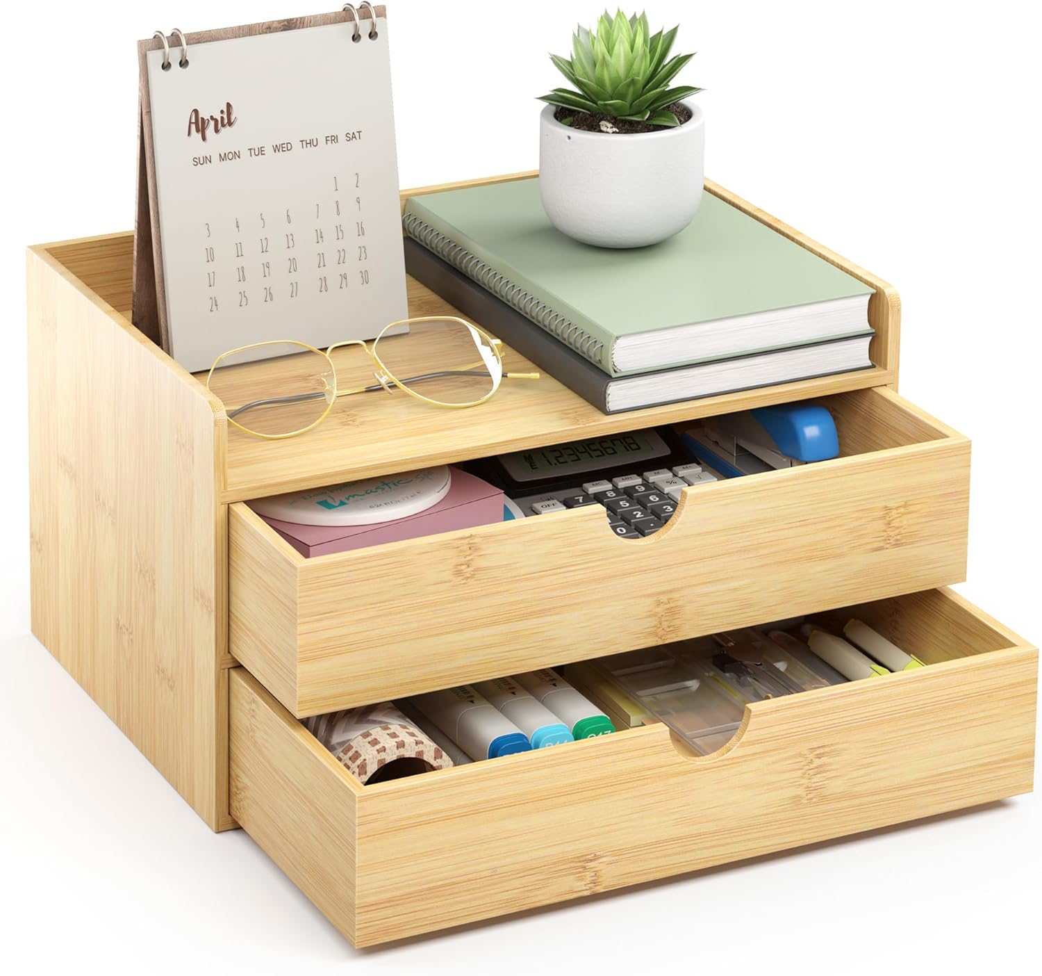 - 【Storage and Multi-function】 Dimension: 12.99” x 6.6” x6.29”(L*W*H). The Drawer Organzier can store all kinds of documents, tools, accessories and bills of your desk. You can put this desktop organizer with drawers in the office, study, dresser, bathroom,countertop,etc.