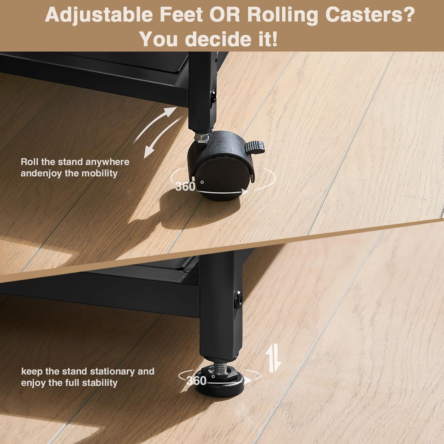 - Easy to Move & Stable When Stationary:The printer stand with storage has 4 wheels that can rotate 360°, and you can push the printer stand to wherever you want. 2 of the 4 wheels can be locked, allowing flexible movement while maintaining sufficient stability in the placement position of the printer stand. The printer stand also comes with 4 Adjustable Feet for you to choose upon your needs