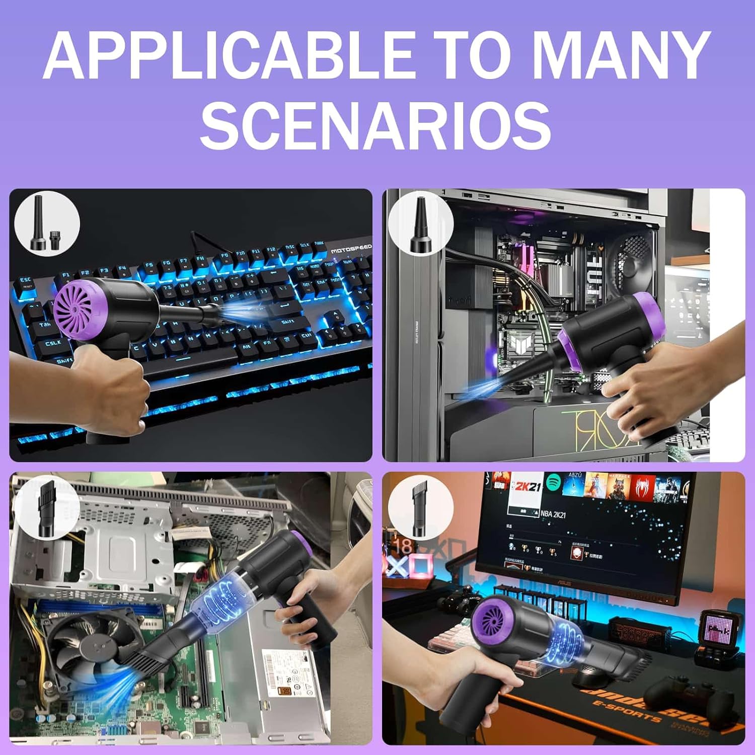 - ăMultifunctional 2-in-1 DesignăThis portable vacuum cleaner offers dual functionalityâblowing and suction. Perfect for cleaning hard-to-reach areas like computer keyboards, car seats, and air vents, it ensures quick and hassle-free cleaning without bulky equipment.