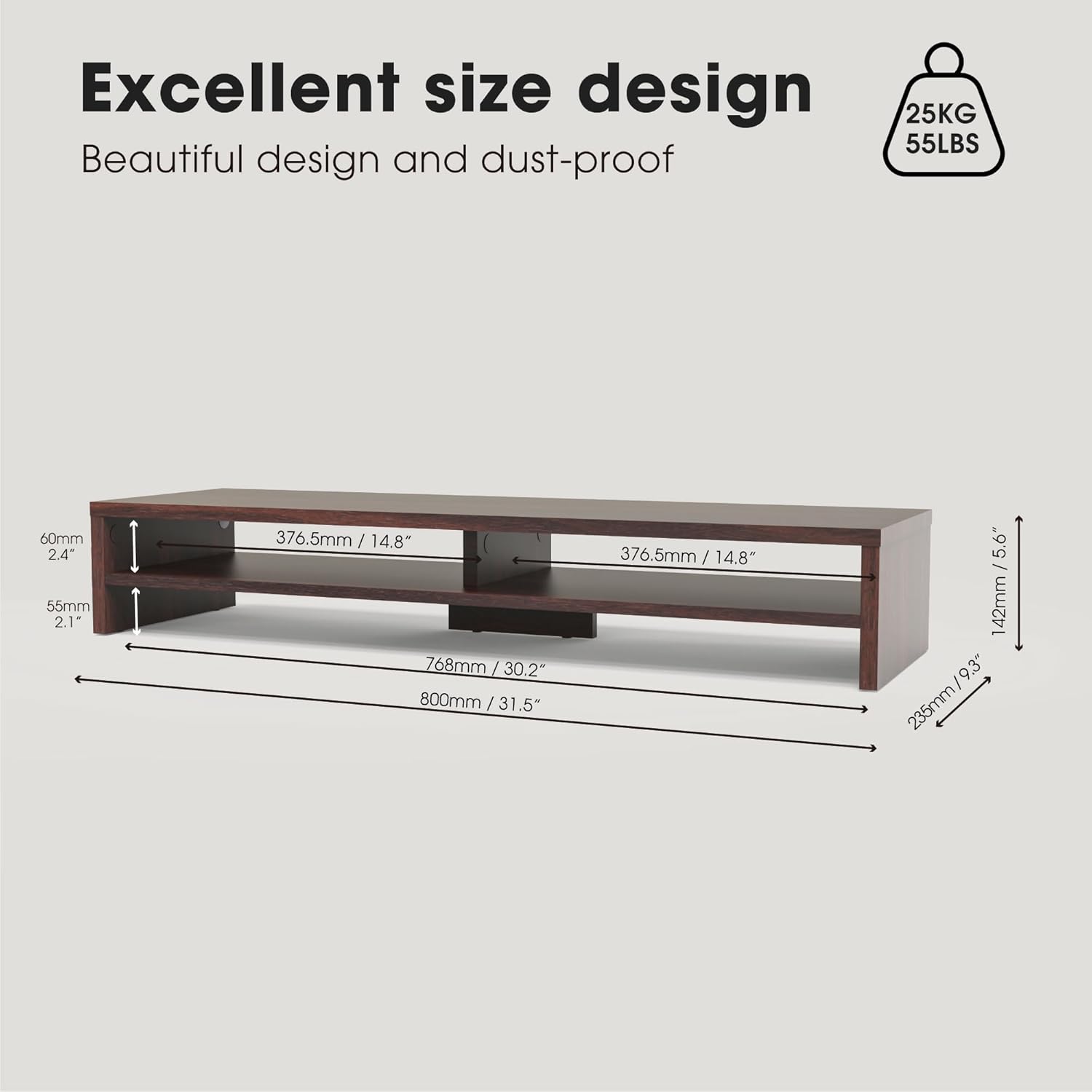 Fenge Monitor Stand, 31.5 Inch Computer Monitor Riser for Desk, 2 Tiers Wood Desk Shelf with Storage, Desktop Organizer for PC, Laptop, Screen, Printer