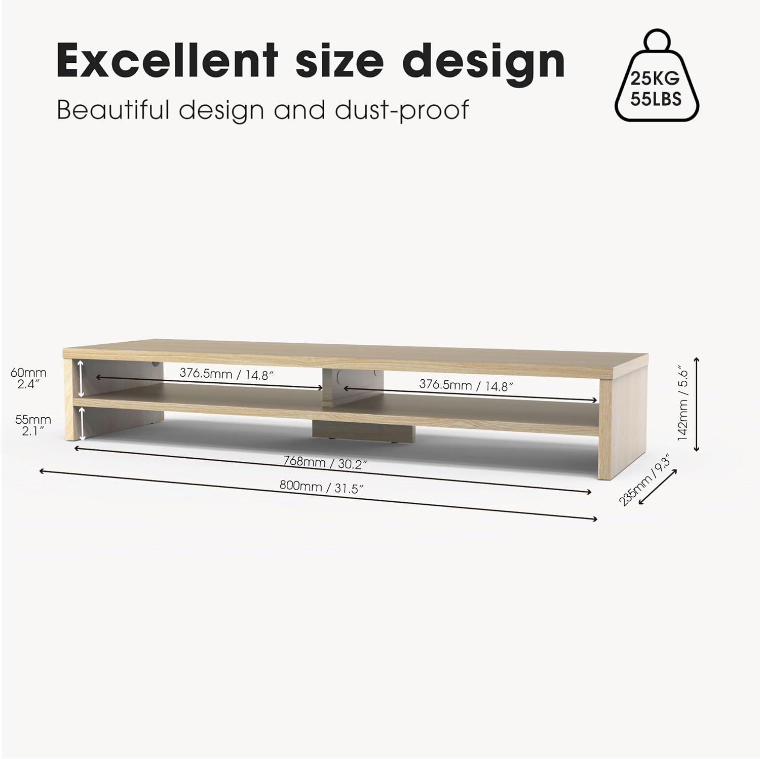 - 【Durable Computer Stand】Built with high-quality MDF panel (15mm/0.6inches), reinforced with crossbars to prevent sagging, this sturdy desk organizer holds up to 55lbs. Easy to clean and ideal for computer monitor stand or laptop stand for desk, it ensures long-term reliability in any workspace.