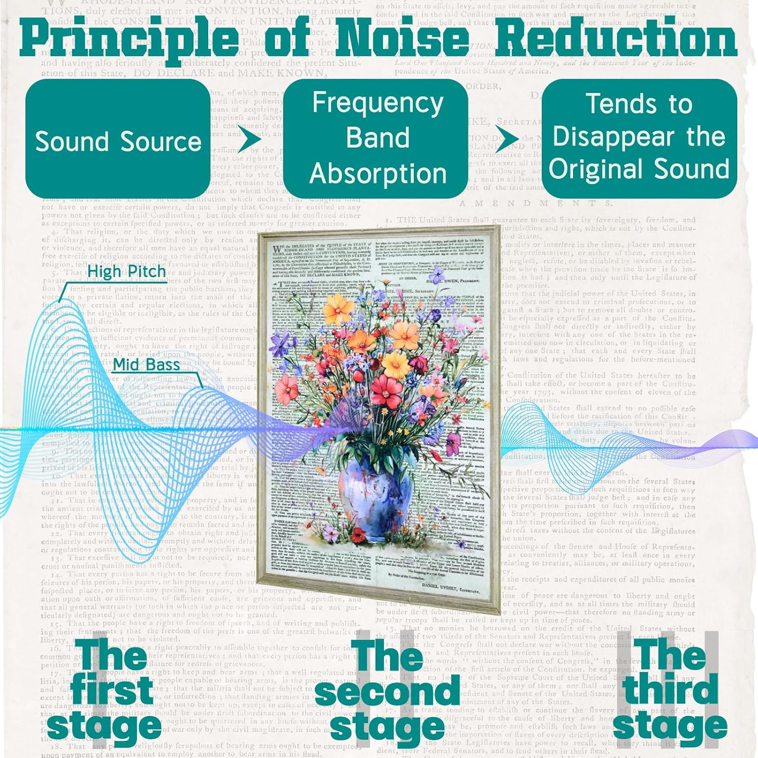 - 【Design Inspiration】: This acoustic panels sound absorbing upholders the environmental protection and friendly concept, each of the patterns on the soundproof panel are flowers on the waste, showing us that fearless life, even the ruins can nurture life. The unique shadow photo frame design of the border makes the painting more three-dimensional and vivid.