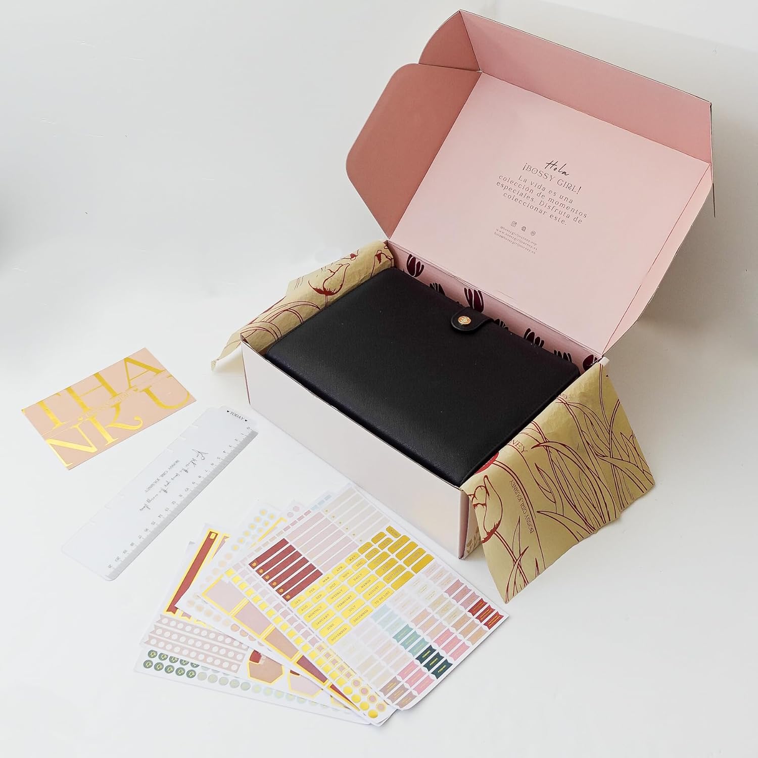 Bossy Girl Journey - A5 Week Undated Daily and Monthly Planner A5 Binder – Goal Setting Productivity Planner 120 Creamy GSM, Habit Tracker, 8 Tabs, Stickers + Bookmark & User Guide - Refillable Organizer for Women